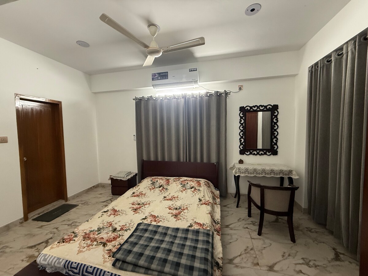 Bienvenido a nuestro encantador apartamento totalmente amueblado, enclavado en el barrio seguro y acogedor para extranjeros de Baridhara DOHS. Este acogedor espacio ofrece todas las comodidades, como un baño adjunto con ducha caliente en cada dormitorio, wifi rápido y aire acondicionado. El apartamento está cuidadosamente amueblado con una cocina bien equipada, un comedor, una sala de televisión y una sala de estar familiar. Tanto si eres extranjero, como si eres una familia o un viajero, este espacio está diseñado para satisfacer tus necesidades.
