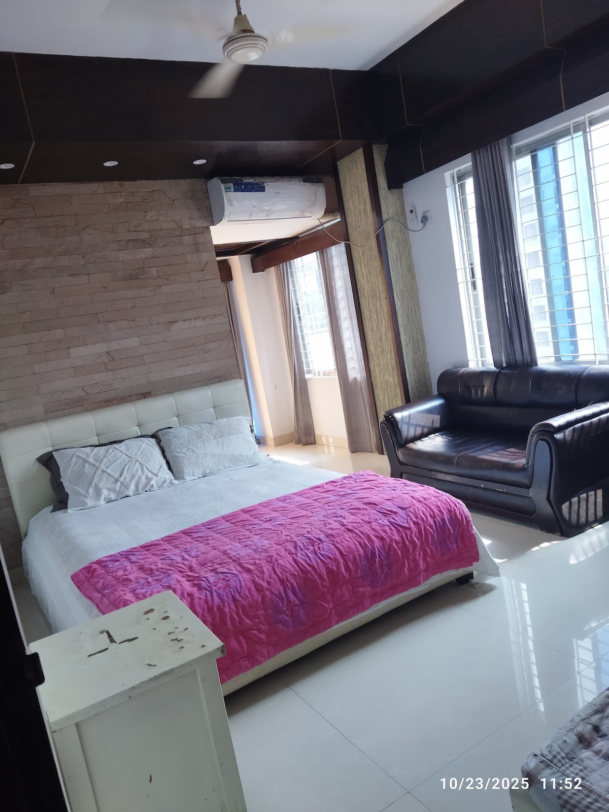 Este apartamento grande está bien iluminado y recién amueblado. Está tan cerca de las principales áreas VIP como el aeropuerto, la zona diplomática, Banani y Gulshan. Sistema de limpieza en buen estado. Está decorado con 3 camas Deluxe en 3 habitaciones, aire acondicionado en todas las habitaciones, TV inteligente con conectividad wifi, nevera, horno microondas, purificador de agua, wifi de alta velocidad 24/7, sofás, área de lectura, utensilios de cocina, juegos de comedor, sábanas, toallas, mantas, etc.