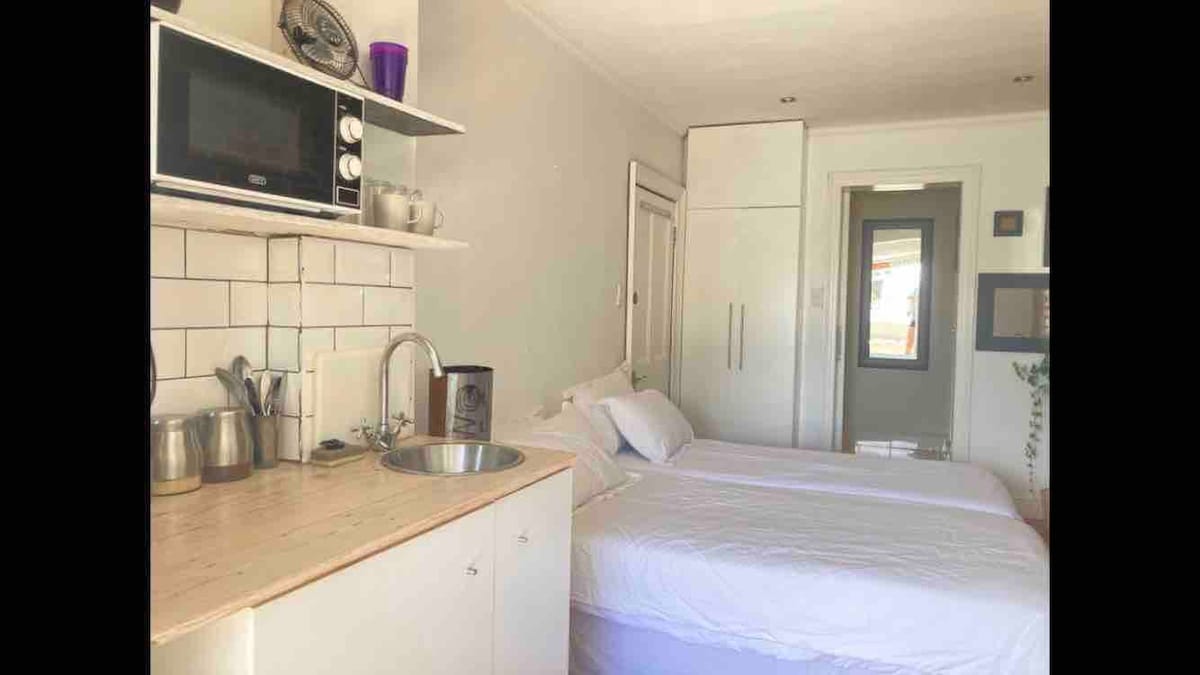 Ideal para estancias cortas de negocios. Cancelación inusual de fin de semana largo del 3 al 8 de febrero. Pasa por las puertas batientes y entra en un baño de estilo cuarto húmedo con artículos de aseo locales de Ecoco y toalleros con calefacción. Hay un ventilador de techo para los días calurosos. Luego desayuna en los asientos acolchados del patio privado, acompañado de un café Nespresso cubierto con espuma de leche. Si quieres desayunar temprano, puedo proporcionarte una deliciosa cesta de productos frescos en tu nevera la noche anterior. También puedo proporcionarte una pequeña cesta de magdalenas calientes o bollos a tiempo para tu comida. Se cobrará un cargo adicional por esto dependiendo de lo que quieras. El estudio El estudio (que es ideal para una pareja o una sola persona) es compacto (19 metros cuadrados) y tiene un acabado impecable. Las tablas de madera blanca, los altos techos de madera blanca y las paredes blancas le dan una sensación de amplitud. Las persianas blancas de plantación te dan privacidad y completan la imagen. Dos cómodos sillones, cabecero y pantallas de lámparas son de lino neutro, y la cama, que es de tamaño queen, está vestida con ropa de cama importada de White Company. White Company también ha suministrado las batas de algodón para tu comodidad al final de un largo día de turismo. Hay wifi instalado para conectarte con el mundo exterior y se puede ver un televisor con un paquete completo de DSTV desde la comodidad de tu sillón o cama. Detrás de las puertas Shaker hay un baño de estilo cuarto húmedo con ducha, toalleros con calefacción e inodoro. Los artículos de aseo están hechos a mano localmente por Ecoco, utilizando aceites esenciales seleccionados personalmente. No dudes en disfrutar de estos productos. Dentro de la habitación principal hay una pequeña cocina con encimeras blancas y armarios de estilo Shaker. Una máquina Nespresso con una variedad de tipos de café y un espumador de leche para reemplazar a tu barista favorito. Otros electrodomésticos incluyen microondas, mininevera, tostadora y hervidor de agua. Las comidas se pueden disfrutar en tu propio patio privado cuando hace buen tiempo o en un mostrador muy cómodo dentro del estudio. El patio está plantado con hierbas, rosas y enredaderas verdes. Aquí puedes descansar en cojines largos y sentarte en una mesa de estilo bistró en cómodas sillas bajo un toldo estilo cafetería. El jardín inferior está a disposición de los huéspedes. Limita con el cinturón verde. Hay una mesa rústica y sillas para que te sientes y disfrutes de un pícnic o una taza de café, etc., rodeado de vegetación y aves. Una puerta en el jardín te conecta con una serie de paseos por el río. Esto también es perfecto para los observadores de aves. El estudio es privado y tiene un patio. Los huéspedes tendrán su propio aparcamiento y acceso. Estoy encantado de interactuar tanto o tan poco como los huéspedes quieran. Disfruto de la gente, pero respeto su privacidad. Estaré presente cuando los huéspedes estén aquí. Sigue las rutas de senderismo mapeadas desde la puerta de esta propiedad en el verde valle de Constantia. Hay montañas y viñedos por todas partes, con amplias zonas comerciales justo al final de la carretera. Toma la cercana autopista a las playas y Ciudad del Cabo. Necesitarás un coche de alquiler o depender de taxis como Uber. Hay bicicletas disponibles si deseas recorrer el cinturón verde. El estudio es ideal para una pareja o para una sola persona. El estudio también es ideal para una persona de negocios soltera o una pareja. Si deseas que abastezca tu nevera para el desayuno/refrigerios, etc., estaré encantado de hacerlo. Por favor, respeta la privacidad de los huéspedes de la casa. AUNQUE ESTAMOS EXPERIMENTANDO UNA SEQUÍA AQUÍ EN EL CABO, AQUÍ EN 33 STRAWBERRY LANE TENEMOS NUESTRA PROPIA FUENTE DE AGUA SUBTERRÁNEA. Sin embargo, te pediremos que tengas cuidado con el uso del agua.