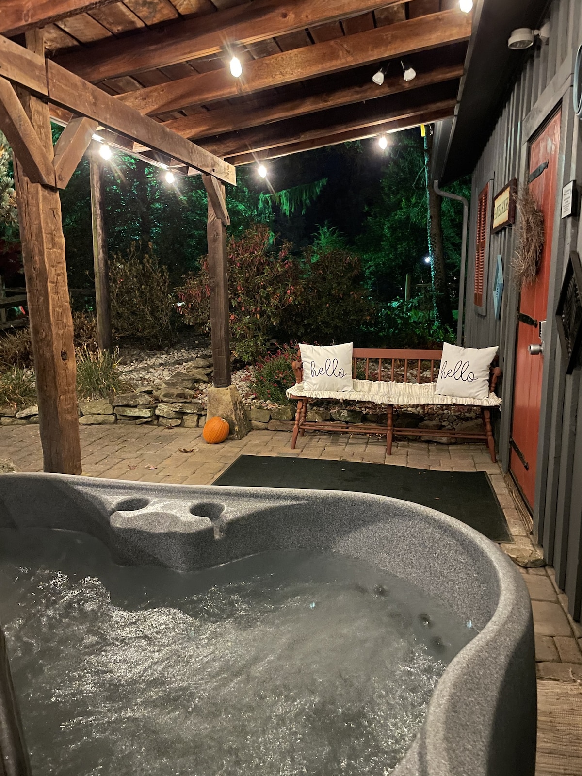 The Chalet in the Orchard was designed with Romance, Luxury, and Relaxation in Mind. The Chalet offers many first class amenties to Enjoy with your Partner. * Movie Theater with Surround Sound * Tonal Digital Home Gym * Dedicated Work Space * Fast Wifi * Sauna * Hot tub * Outdoor TV * Gas and Wood Burning Fire Pit * Private outdoor Seating * Large Soaking Bathtub * Luxury Stone tile Shower * Heated Tile Bathroom Floors * Full Kitchen * Breville Espresso Machine * King Bed