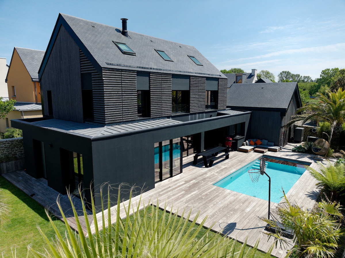 LA VILLA RUCETTE - Impresionante villa de arquitecto de 2021 con piscina cubierta climatizada durante todo el año, idealmente situada para visitar la Costa Esmeralda y disfrutar de las playas de los alrededores (playas de Dinard a 5 minutos en coche). Podrá compartir momentos de convivencia en la gran sala de estar de 70 m², hacer barbacoas en la terraza exterior orientada al sur y protegida de los vientos dominantes, jugar a la petanca con amigos y disfrutar de los placeres de las comidas al aire libre.