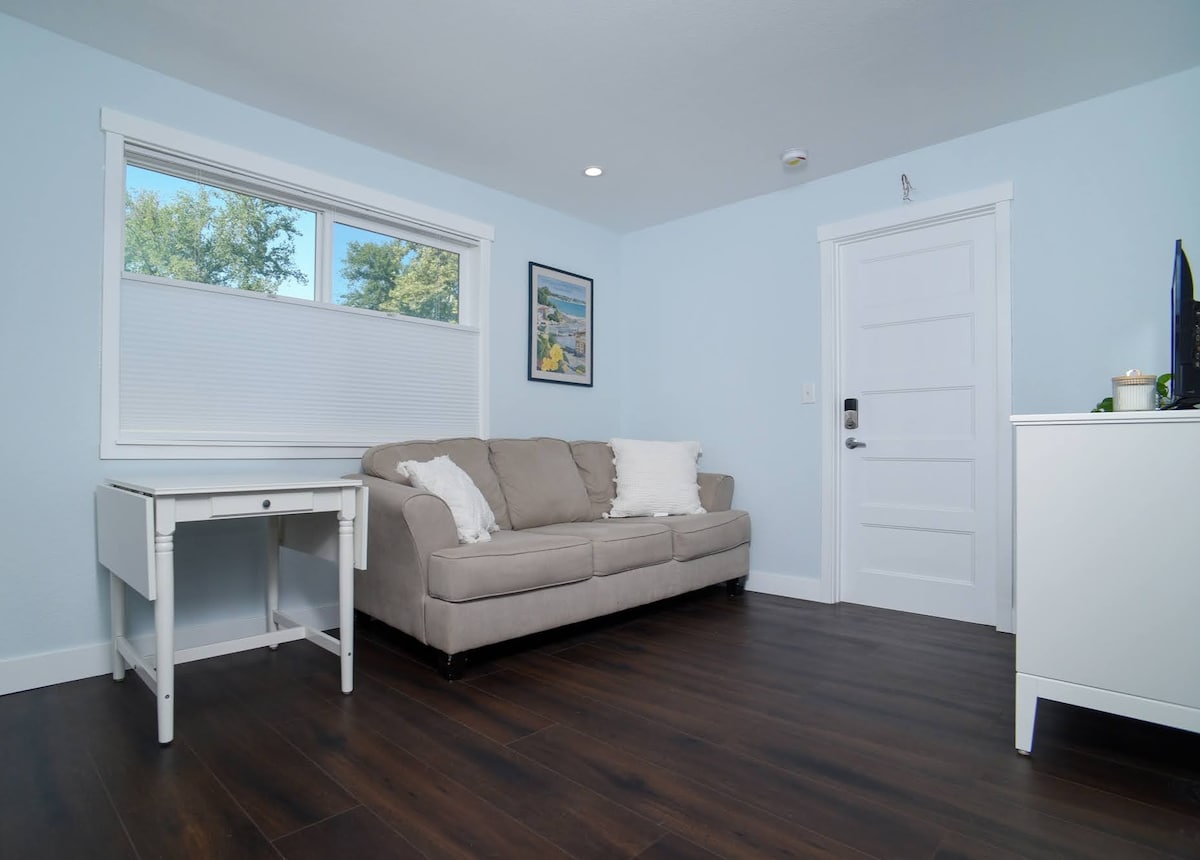 ¡Da la bienvenida a nuestra pequeña vivienda situada cerca de Downtown Riverwalk! Este acogedor refugio cuenta con 1 dormitorio/ 1 baño, una cocina totalmente equipada, electrodomésticos de primer nivel que incluyen lavadora/secadora Miele y espacio de oficina dedicado. ¡Disfruta de tu paseo hasta el Puente de la Torre y el Viejo Sacramento, con el Capitolio de California a solo 1,5 millas de distancia! ¡Ven a experimentar la combinación perfecta de comodidad, conveniencia y proximidad a las principales atracciones de Sacramento!