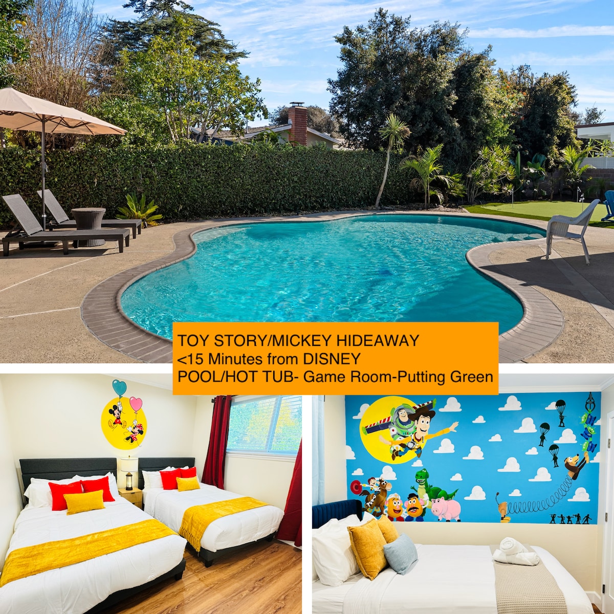 Tu escapada familiar perfecta está aquí, a pocos minutos de Disneyland y del área del centro vacacional de Anaheim. Una casa divertida con cosas que hacer para toda la familia, que será disfrutada por adultos, niños y todos los amantes de Disney. Recientemente remodelado con todos los muebles y electrodomésticos nuevos, inculcamos nuestro amor por todo lo relacionado con Disney, Pixar, Star Wars y Marvel en cada detalle. Con un gran patio trasero con juegos, juguetes, castillo inflable y mucho más, este es el espacio ideal para alojarte mientras estás de vacaciones o escapada en Disney.