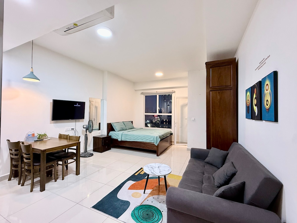 Un apartamento estudio bellamente diseñado con todo lo que necesitas, céntrico pero escondido lo suficiente para una noche tranquila de sueño lejos del ruido pesado de la ciudad. Ideal para viajeros que quieren explorar Saigón y buscan comodidad de calidad y una experiencia más local. - Hermosa pileta - Wifi rápido gratuito, TV con cable - Servicios gratuitos para tu vida: lavadora, secadora, aire acondicionado, nevera, agua caliente. - Cocina con suficientes herramientas para cocinar. Nota: no proporciona/respalda las facturas con IVA
