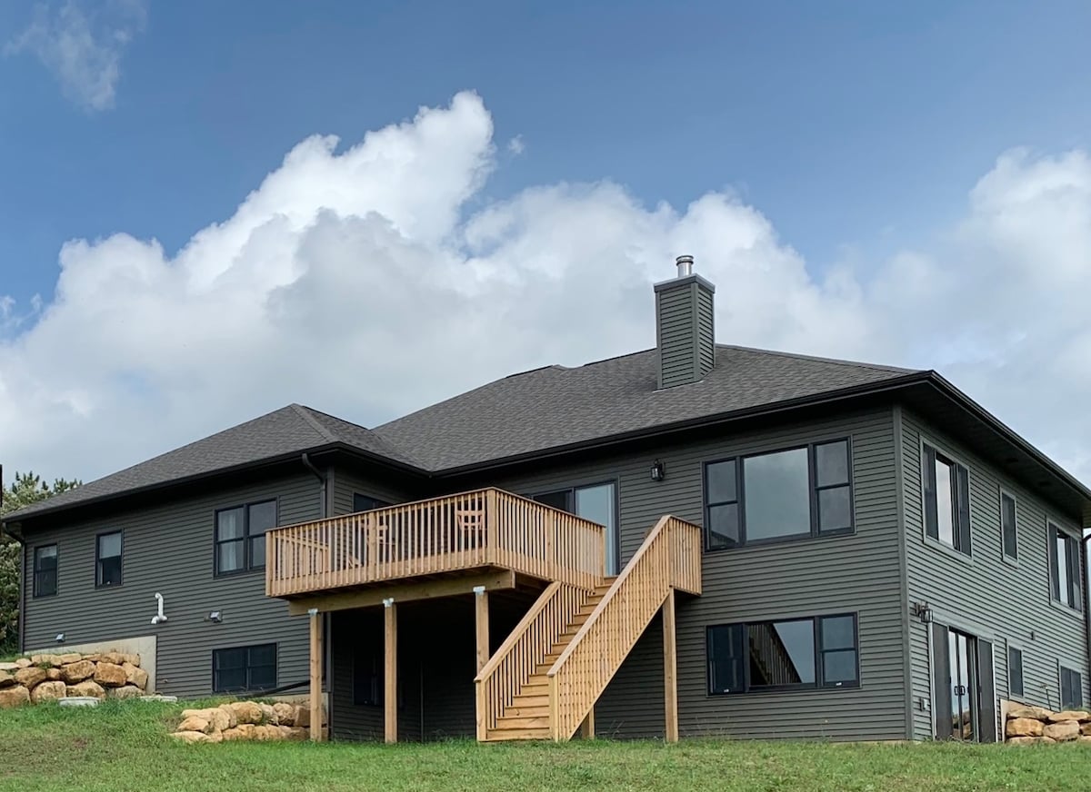 A diez minutos del primer tee en Erin Hills, el entorno rural tranquilo es perfecto para su grupo o cuarteto. Cerca de muchos lugares para bodas, Holy Hill Basillica y el mejor golf de Wisconsin. Casa moderna con cocina gourmet, comedor con banquetas, chimenea de leña en la gran sala y área de juegos separada. Opciones de lujo para dormir para 4-10 personas. Salón y comedor al aire libre con fogata y parrilla en un lote de madera privado. ¡Gran garaje de juegos con SIMULADOR DE GOLF, futbolín y mucho más!