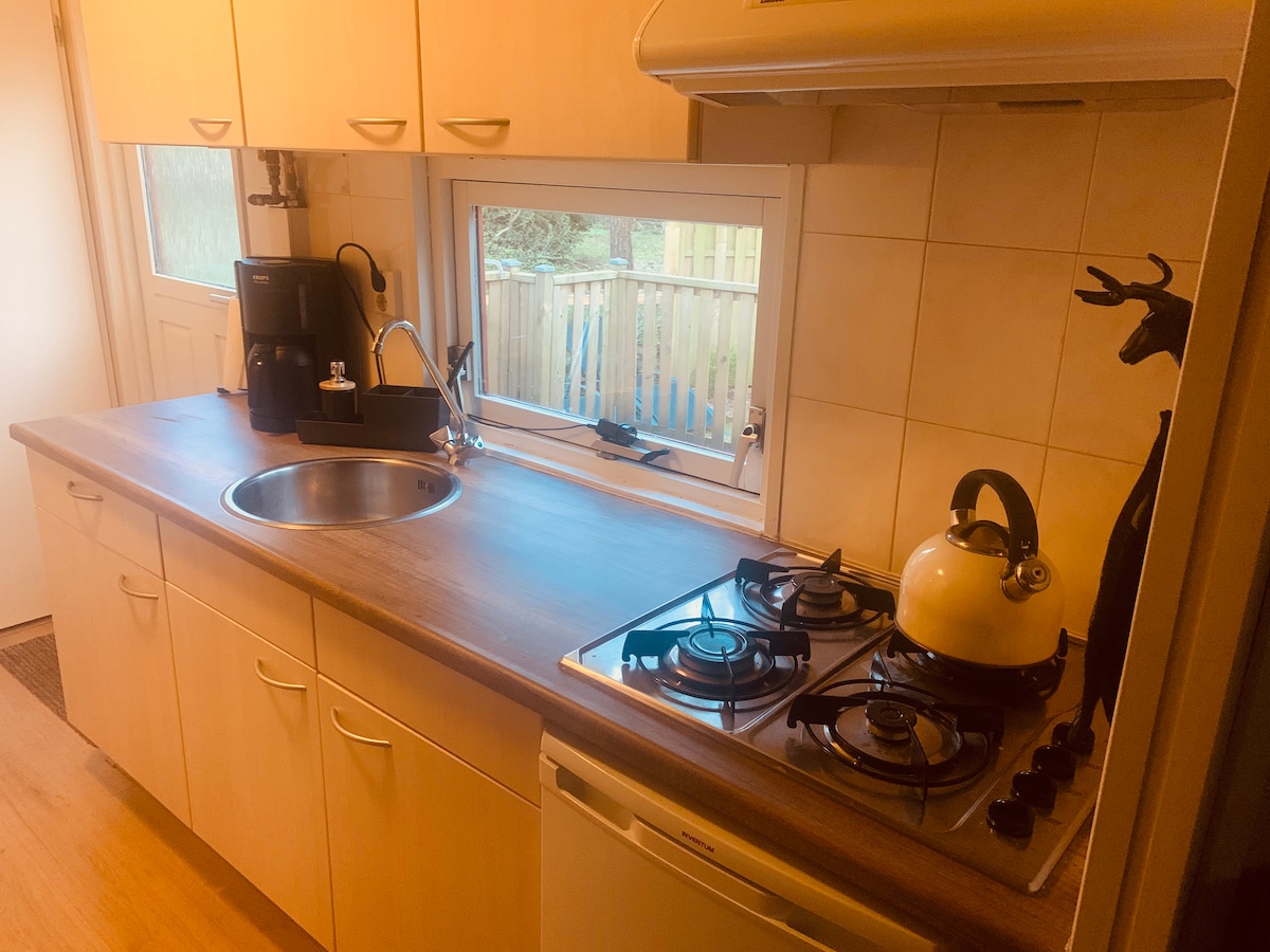 Prachtige Airbnb in landelijke omgeving op de Veluwe. Dit heerlijke privé huisje ligt naast het huis van de eigenaresse. U heeft dus het rijk voor u alleen. Er is plaats voor twee volwassen in een slaapkamer met uitzicht op bos. Kom helemaal tot rust bij de kachel, luister naar de vogeltjes en de ruisende bomen. De boekenkast staat vol met boeken en spelletjes. In het leuke Voorthuizen is van alles te doen, dus naast rust is er veel vertier te vinden in de omgeving.