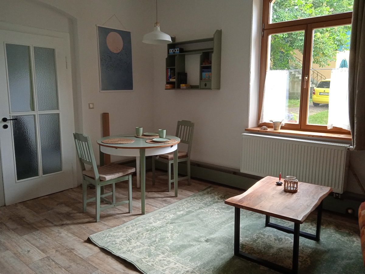 15 minutes by bus to the Christmas market (Striezelmarkt) in Dresden. 40 minutes to the ski slopes in the Ore Mountains (Altenberg). Special rates available on request for quiet groups and families :) Also suitable for up to 8 people! Wellness Facilities: Enjoy a first-class wellness weekend at my house with a sauna, a year-round heated whirlpool (up to 42°C), and a pool (cold plunge). Basics: You can expect bathrobes, towels, complimentary coffee, and a selection of herbs and spices.