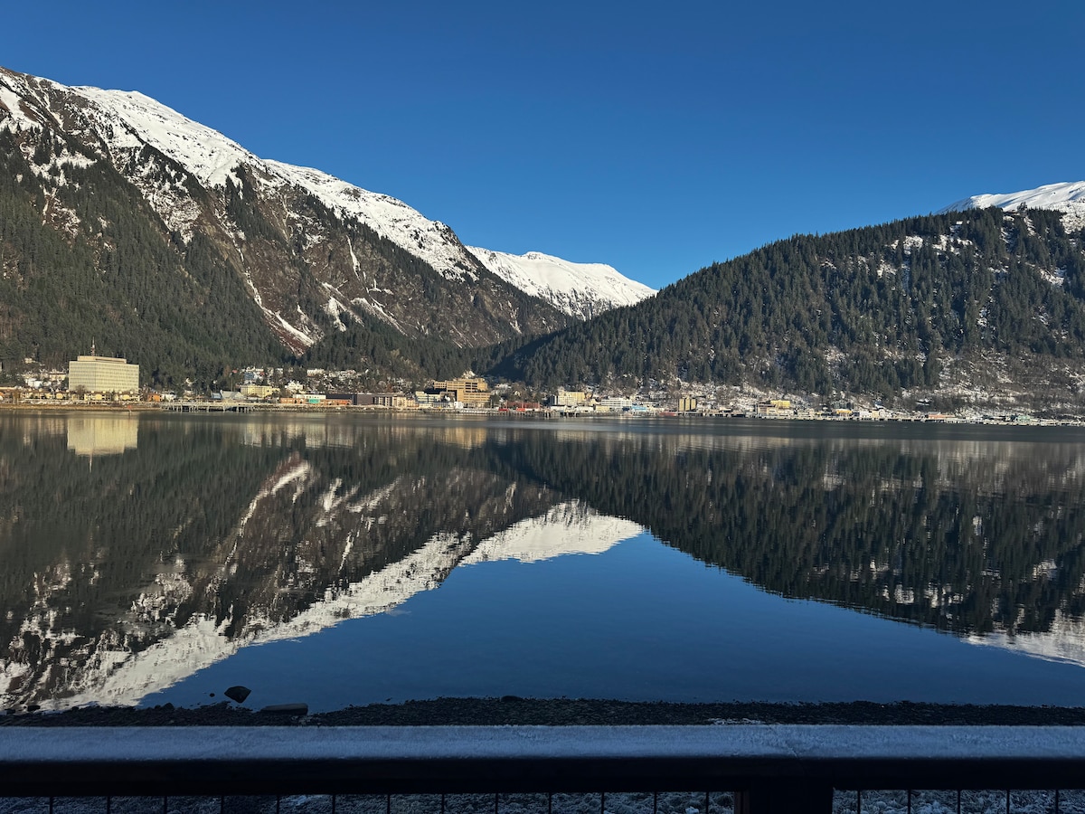 Lovely apartment on the water with spectacular views of Juneau with mountains above. King-size bed in master bedroom and queen-size bed in second bedroom. Comfortable living room and dining area looking out on the beauty of Juneau. Watch sea planes landing and taking off from the deck while having coffee in the morning or sipping wine in the evening. Easy walk over the bridge into town and bikes available. Eagles roost in the trees above and lots of sea life.