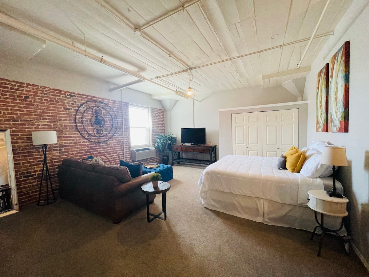 Hermoso loft ubicado en el corazón del histórico Haymarket. El loft está a poca distancia a pie de todos tus restaurantes favoritos, el centro de la ciudad, el campus de la UNL, el estadio Memorial y el Pinnacle Bank Arena. Este loft tipo estudio cuenta con una cama tamaño king y un sofá cama, un baño 3/4, una cocina completa, un comedor/espacio de trabajo, internet privado y una lavandería que funciona con monedas al lado. El loft se encuentra en el tercer piso (sin ascensor para pasajeros) y el edificio tiene una entrada segura.