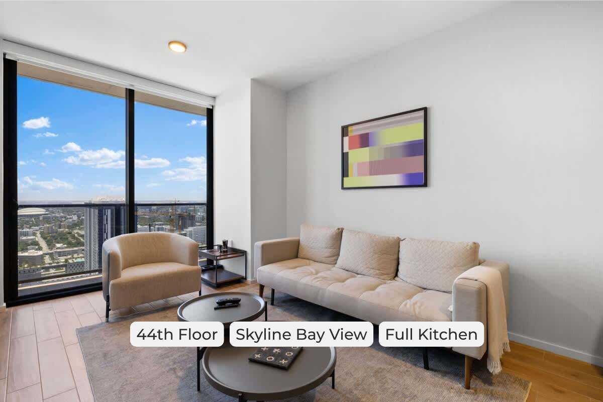 ¡Disfruta del lujo moderno en la planta 50! Este ático de 1 dormitorio de nuevo diseño ofrece impresionantes vistas a la bahía y a la ciudad a través de ventanas de suelo a techo que llenan el espacio de luz natural. El dormitorio cuenta con una cama tamaño king, y la sala de estar incluye un cómodo sofá cama, perfecto para un máximo de 4 personas. Disfruta de una cocina totalmente equipada, una piscina estilo resort, un gimnasio y un spa. Ubicado en el centro de Miami, a solo unos pasos de los mejores restaurantes, tiendas y vida nocturna de la ciudad.