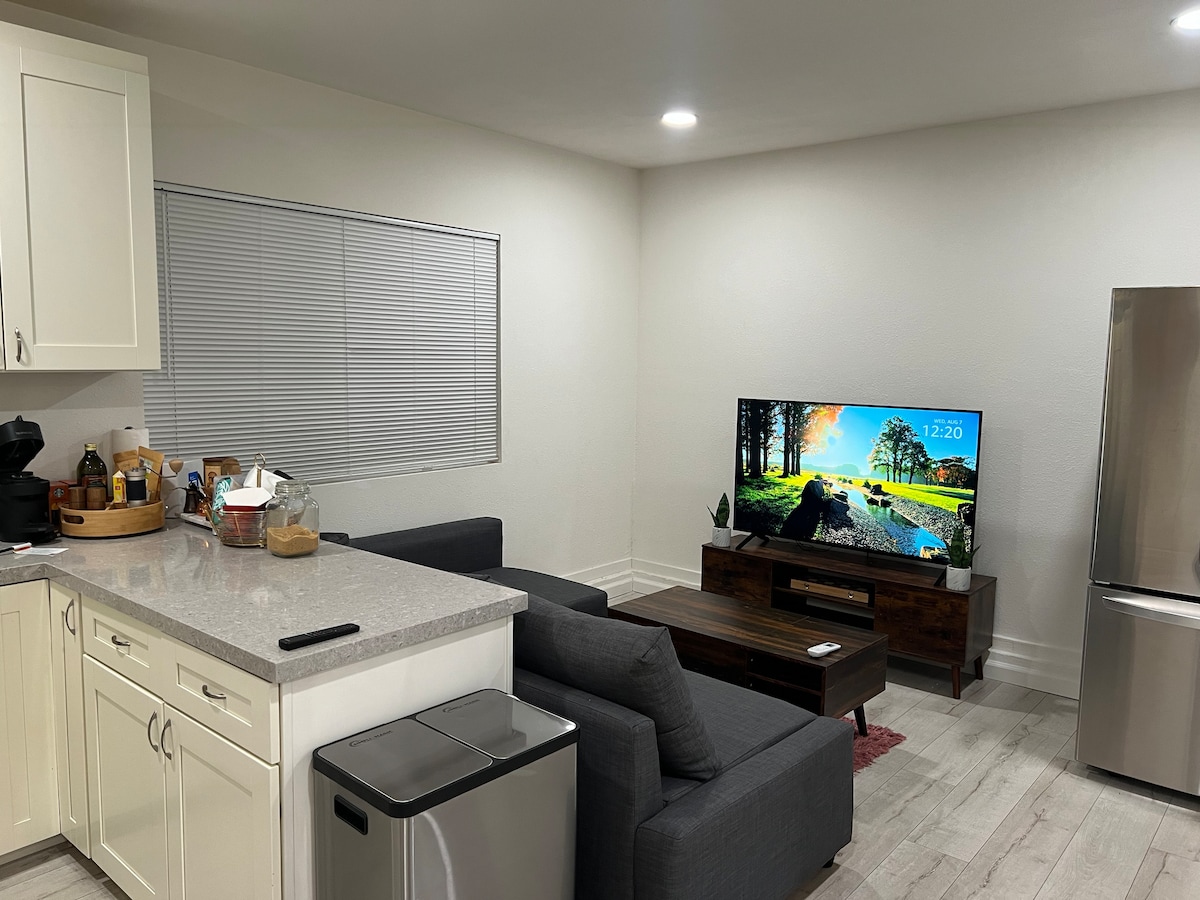 Nuestra casa de huéspedes independiente está situada en el centro de DTSJ, cerca de Japantown, cuenta con una cama tamaño king ultracómoda y un sistema de aire acondicionado frío mini split en el dormitorio que garantiza una noche de sueño reparador. Una cocina totalmente equipada para chefs y para aquellos que necesitan trabajar durante su estancia, un escritorio ergonómico automático para sentarse y estar de pie. El oasis al aire libre incluye un enorme televisor inteligente de 65 pulgadas, iluminación ambiental, ventilador de techo al aire libre, chimenea de propano y zona de comedor y descanso. El aparcamiento en la calle es gratuito y amplio.