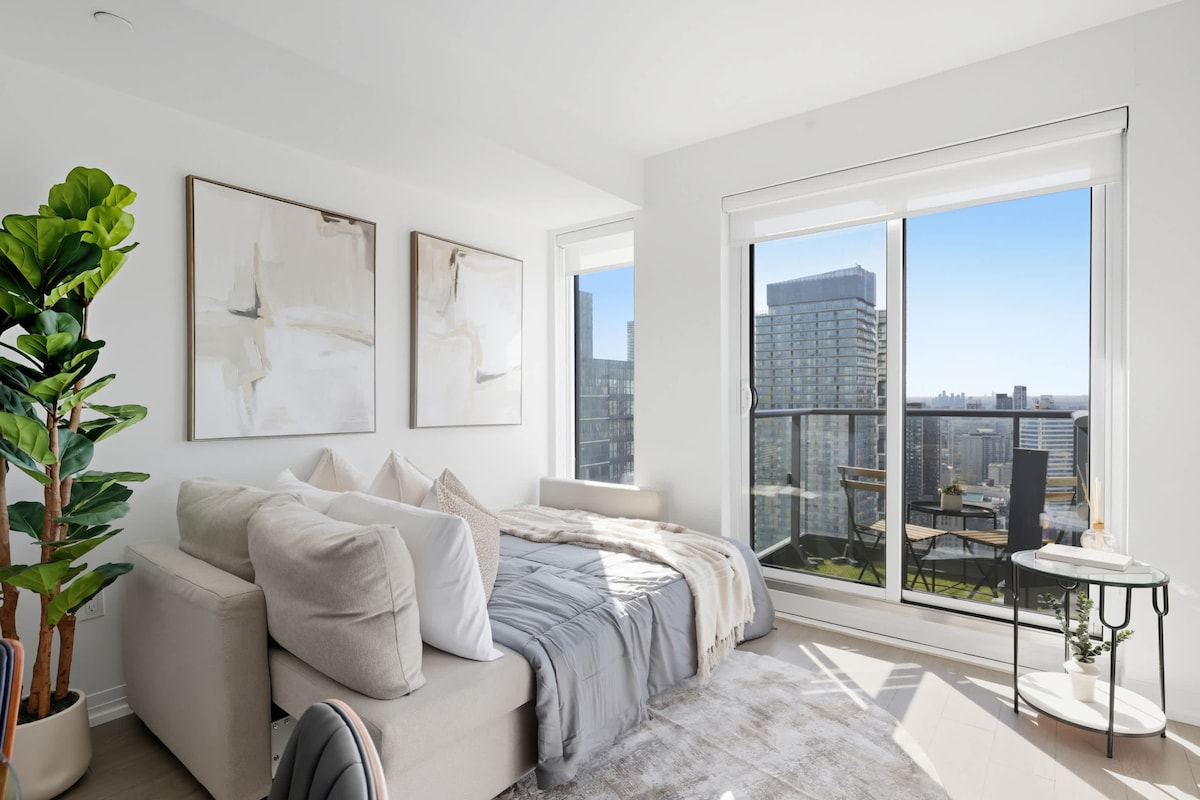 ¡Un loft urbano luminoso y elegante en el corazón del centro de la ciudad! Esta suite llena de sol cuenta con techos altos de 12 pies, impresionantes ventanas del piso al techo y elegantes pisos de madera. Relájate en el sofá extragrande, cena en la mesa moderna y cocina en la cocina totalmente abastecida con electrodomésticos de acero inoxidable. Duerme profundamente en una lujosa cama tamaño queen Westin Heavenly y refréscate en el baño de mármol tipo spa. ¡Incluye lavandería en la suite, wifi de alta velocidad y una ubicación inmejorable cerca de la vibrante King Street West!