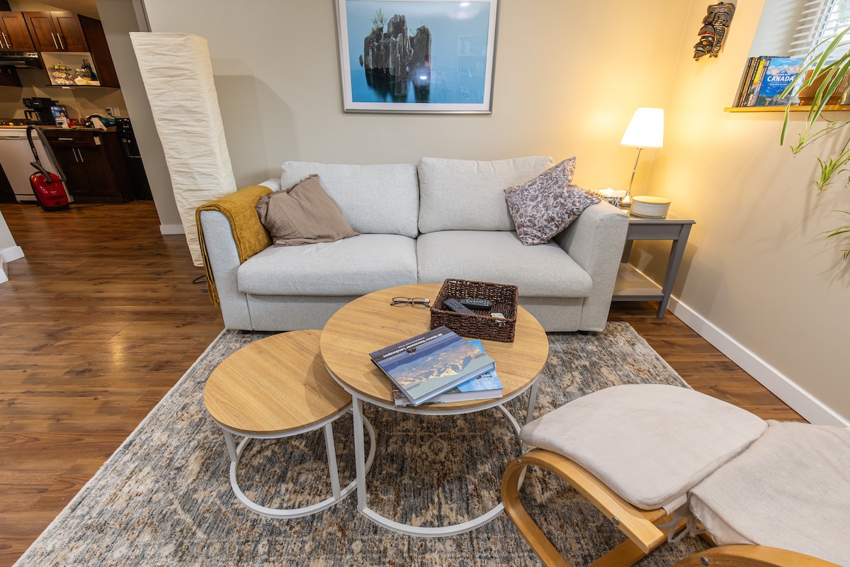 This garden level apartment is located in a beautifully maintained heritage home on one of the most charming tree lined streets in Vancouver. This 650-square-foot private one bedroom, one bathroom suite is perfect for singles or couples for short or long-term stays. Has a fully equipped kitchen with dining area, bedroom with Queen bed, and TV lounge with office space. Please note: ceilings are 6’4” with an occasional 6” drop. **If you are over 6'4" you must be willing to be flexible!!**