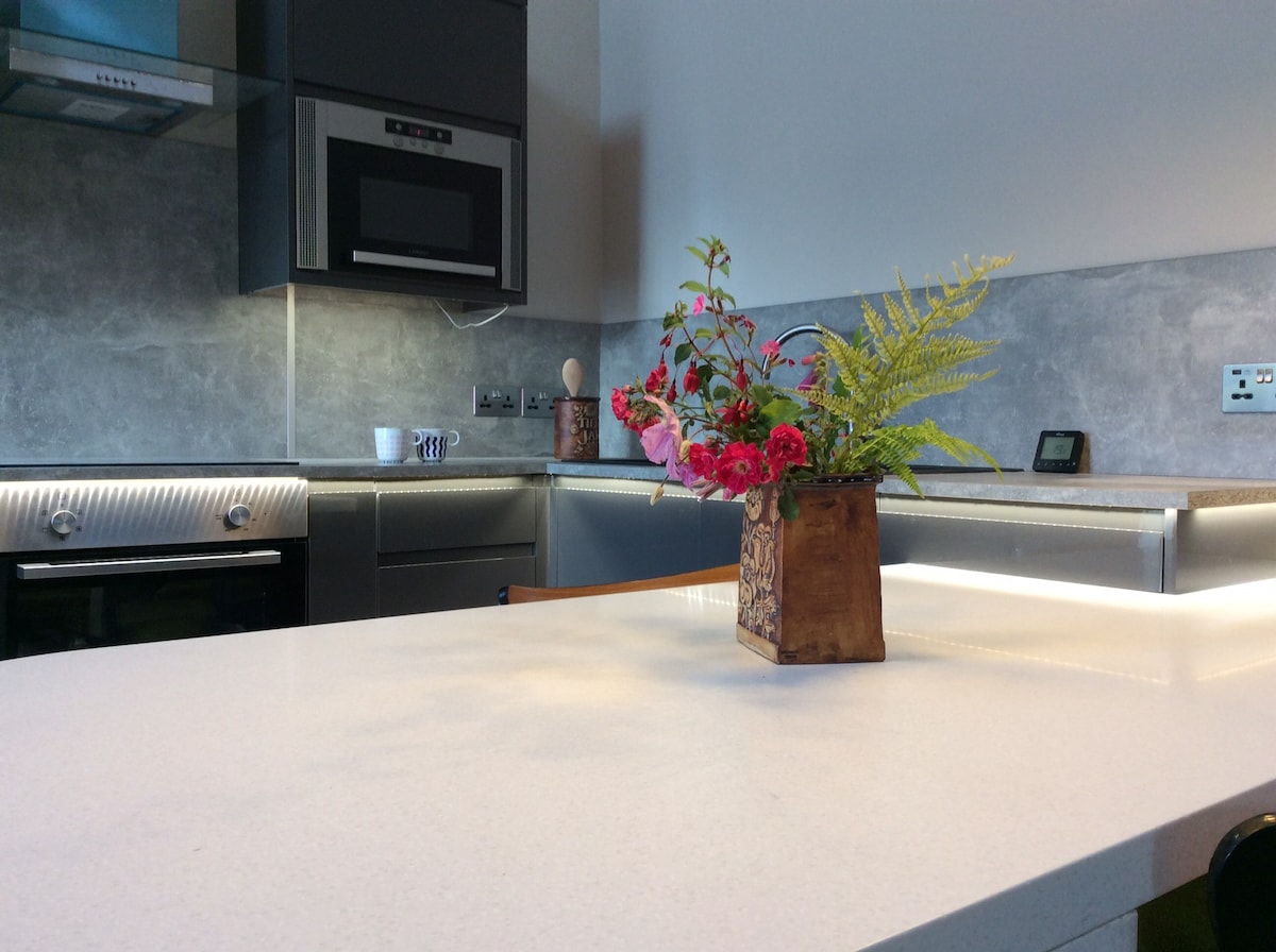 Amplia y luminosa, con calefacción por suelo radiante, la espaciosa y contemporánea casa de campo ha sido convertida a partir de los antiguos estudios de Glyn. A solo 2 millas de la A30, Woodbrooke se encuentra en una impresionante ubicación rural en el borde de Dartmoor, a pocos minutos en coche de los campamentos de la Edad del Hierro, un antiguo bosque templado y el impresionante Sendero del Cazador. Los cielos oscuros y la tranquilidad te permiten ver las estrellas y escuchar el llamado de los búhos, pero la casa también tiene banda ancha de fibra rápida, un televisor inteligente, excelentes duchas y una barbacoa de carbón.