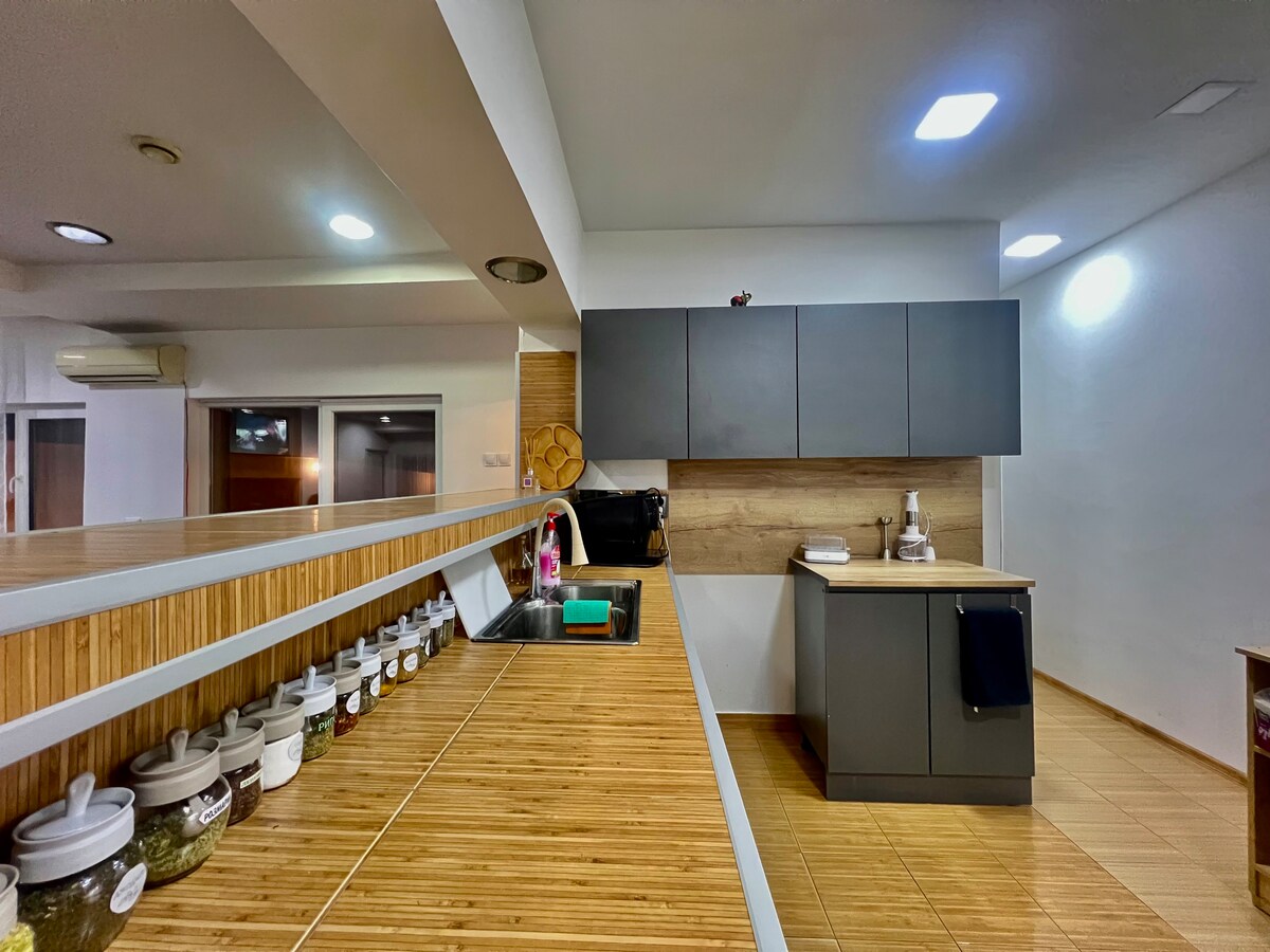 ¡Visita el apartamento de tus sueños! Llena tu estadía de comodidad y lujo. El departamento está ubicado en el centro exacto de Popovo y está equipado con todo lo necesario para una estancia agradable y tranquila. Consejos útiles: - La ciudad de Popovo se encuentra a 30 km (30 min) de: *Razgrad *Targovishte *Omurtag A 80 km (a 1 hora en coche): *Veliko Tarnovo *Ruse *Ruidoso Por la cantidad de 10 lv/5 euros (por persona), también ofrecemos desayuno en nuestra cafetería. También ofrecemos vino boutique de nuestra bodega 20 levas/10 euros.