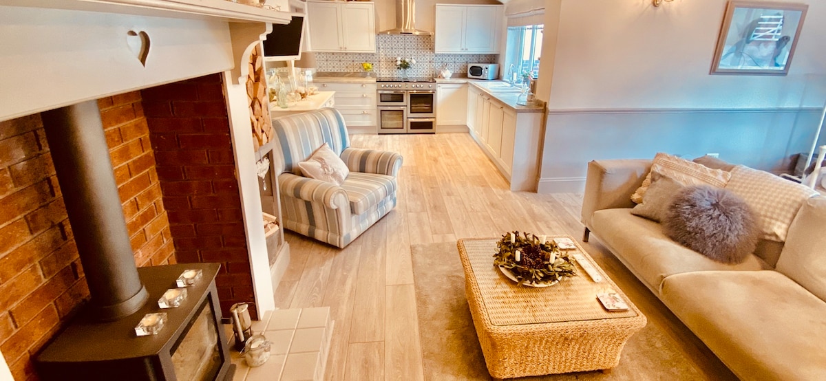 Esta hermosa conversión de granero independiente ha sido renovada con encanto, conservando y trabajando con muchas características originales cuando ha sido posible. Amueblado con buen gusto y de muy buen nivel en todas partes, el espacio habitable de planta abierta tiene una zona de cocina pequeña/compacta con horno combinado/microondas y placa de cocción. Su impresionante techo abovedado con vigas crea un ambiente social cálido y acogedor.
