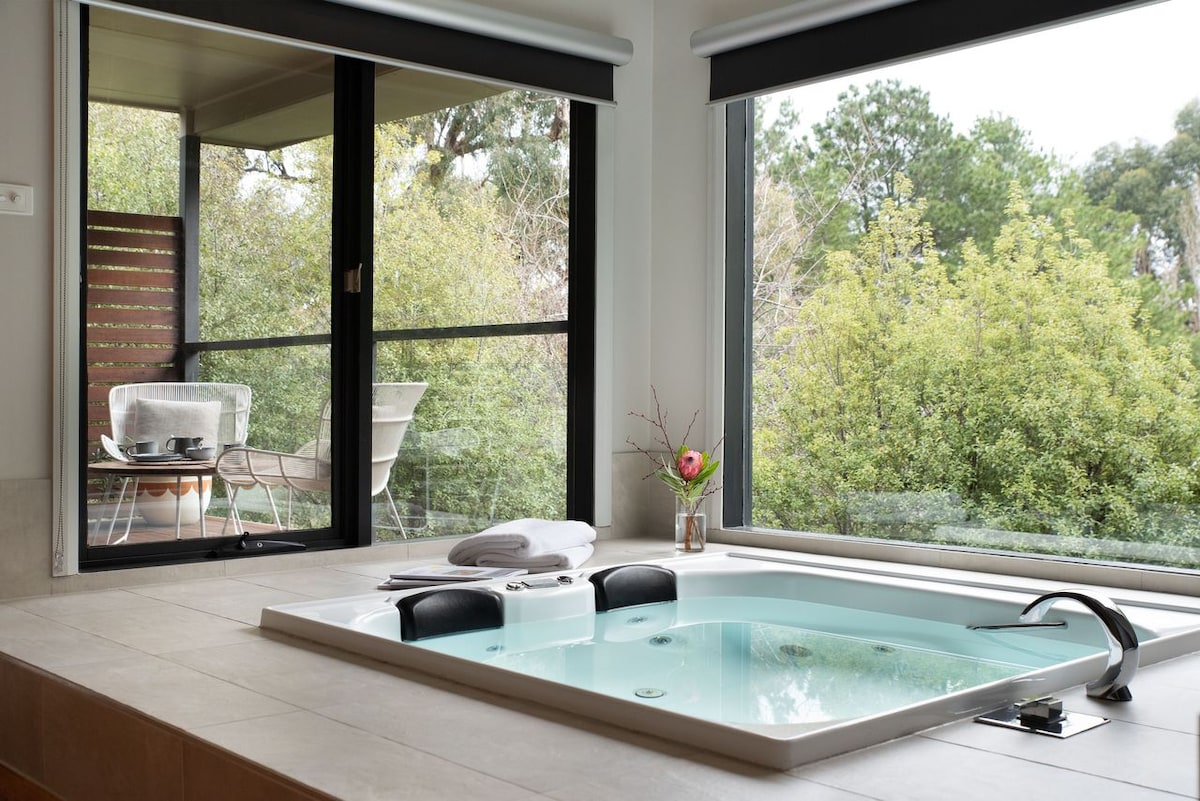 BOOK NOW – SPREADING THE LOVE: Every new booking includes premium local wine, a grazing platter, late checkout and a $100 indulgence credit (valid for stays completed to 31 March). (Breakfast provisions included). Escape to The Miner’s Cottage, a WITT-Certified luxe wellness retreat on a fragrant rose farm with cedar hot tub, steam shower and indoor-outdoor cinema. Styled by Belle Bright Project and featured globally. Stroll to Trentham Village or Wombat Forest -Top Tiny Town 2025.