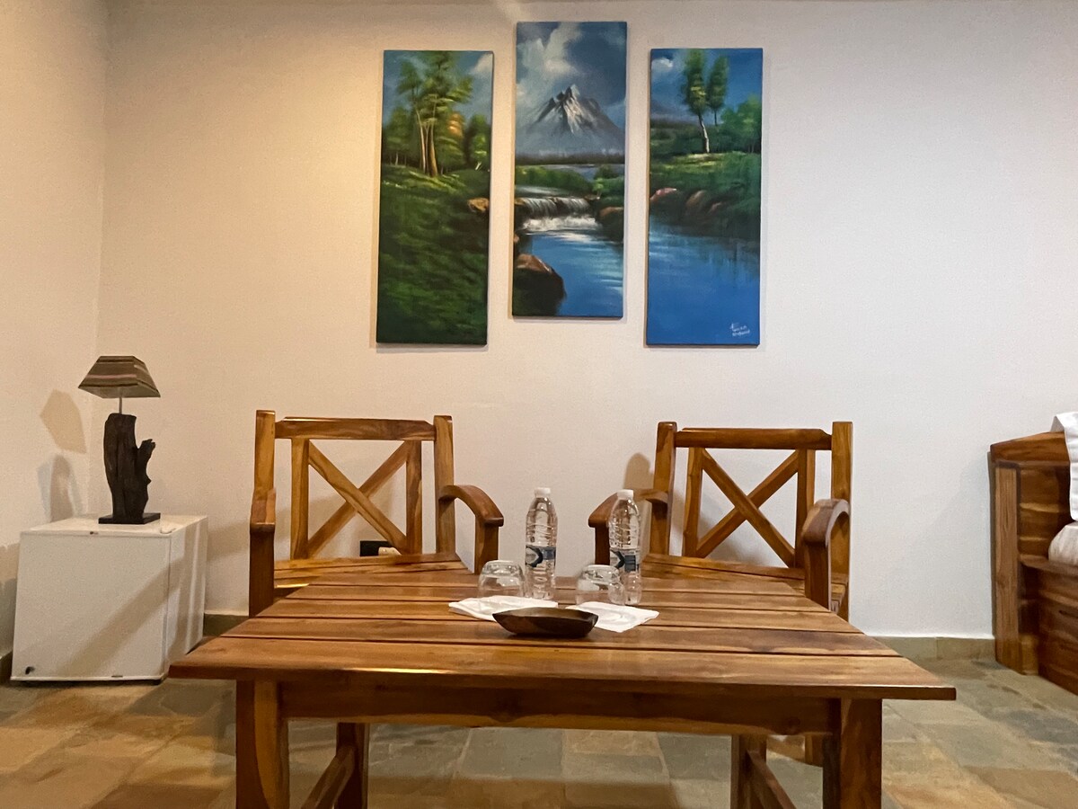 Se encuentra en el corazón de Dzoanti, un pequeño pueblo en Kpando, en la región de Volta. Los huéspedes pueden vivir entre los indígenes y aprender de ellos, pero disfrutando de una estancia cómoda. Es un (1) dormitorio en suite con amplio salón con TV de entrada privada, cine en casa, cama tamaño king, aire acondicionado,