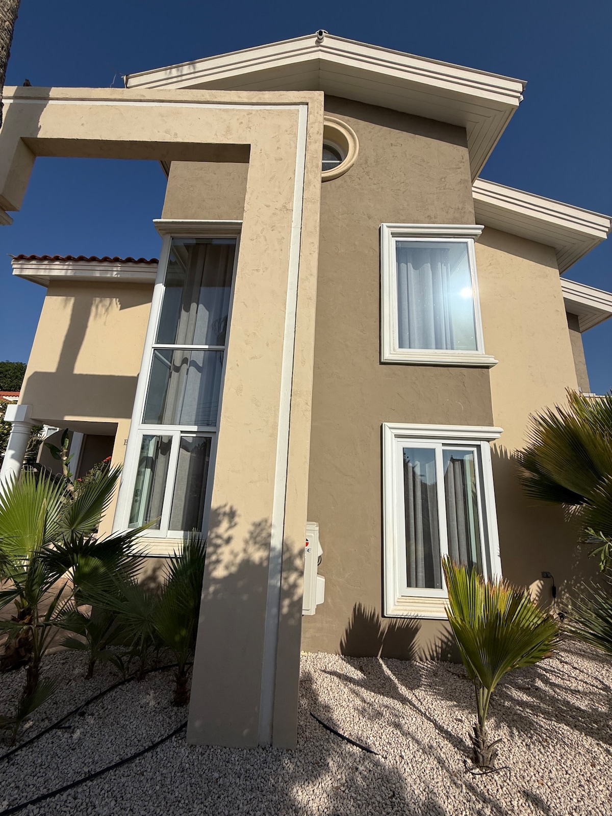 Bienvenido a nuestra villa única, totalmente moderna, con impresionantes vistas al atardecer sobre los rascacielos de Palm Beach. ✔️ Vistas increíbles: vista del atardecer y del horizonte de Palm Beach. A ✔️ 5 minutos en coche de Eagle y Palm Beach. Piscina ✔️ infinita, jacuzzi climatizado, tumbonas, asientos para 10 personas, parrilla para barbacoa, patio cubierto. Cocina ✔️ totalmente equipada (horno, placa de cocina, Nespresso, Airfryer). ✔️ Entretenimiento: televisores inteligentes 4K de 55 pulgadas con Amazon Prime Video, Disney+, Netflix. Artículos básicos de✔️ playa: sillas de playa, toallas y nevera.