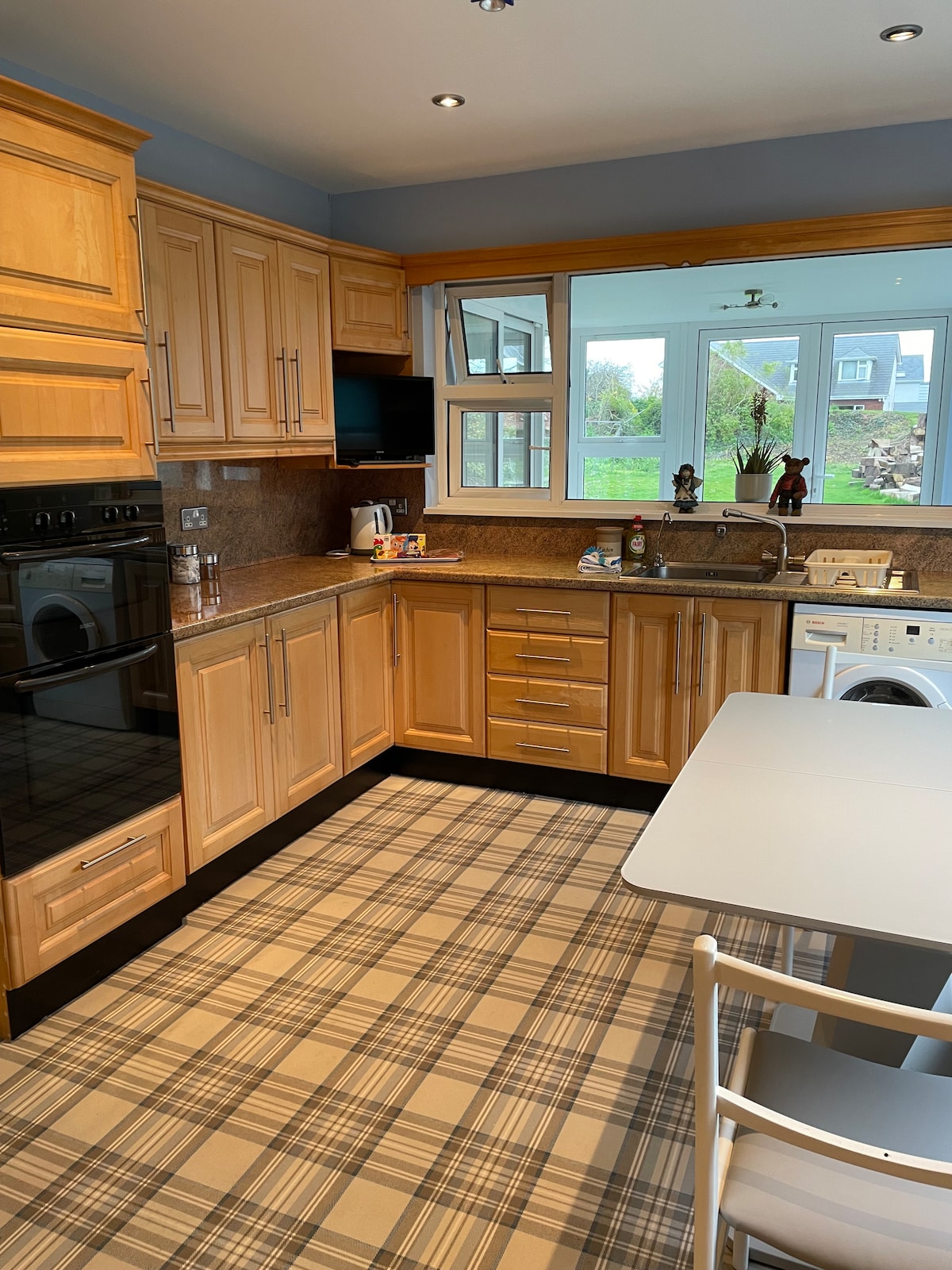 The Clonmellon Lodge is an 18th c. gothic mini castle recently restored, newly refurbished bathrooms and kitchen, all in one floor, with easy access to the grounds of Killua Castle. The Lodge can fit 5 people comfortably. There are 2 bedrooms with ensuite bathrooms. The first one with an ( American) Queen size bed, and the second with a double size bed. There is an office with a daybed that can sleep an small adult comfortably, and it has a full bathroom next to it.