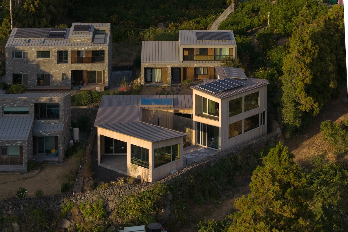 Este es un alojamiento para viajeros que desean explorar la verdadera Jeju. Con una estructura que difumina los límites entre el interior y el exterior, Durante su estancia, podrá sentir que está en contacto con la naturaleza, como en una cabaña de montaña o en un campamento. Interior del espacio con acabados en madera y piedra Hay una bañera y una sauna. Puede recuperarse poco a poco de la fatiga durante su viaje. Es un espacio adecuado para quienes desean hospedarse en tranquilidad y reducir el ritmo del viaje.