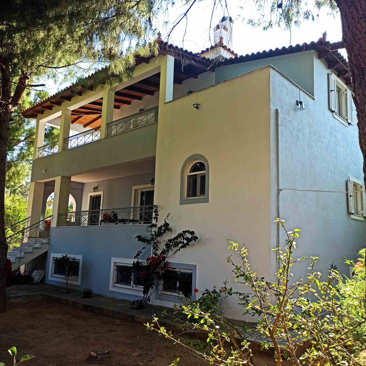 La casa está a 15 minutos en coche del aeropuerto, a 10 minutos en coche del puerto de Rafina (donde puedes coger un barco para visitar nuestras maravillosas islas) y a 15 minutos en coche de la estación de metro más cercana. Está situada en una zona muy tranquila, en el campo, con un gran jardín donde podrás disfrutar de una hermosa vista al mar. Ofrecemos recogida y traslado al aeropuerto por una tarifa adicional. Estaremos encantados de recibirte y hacer que tu estancia sea lo más placentera posible.