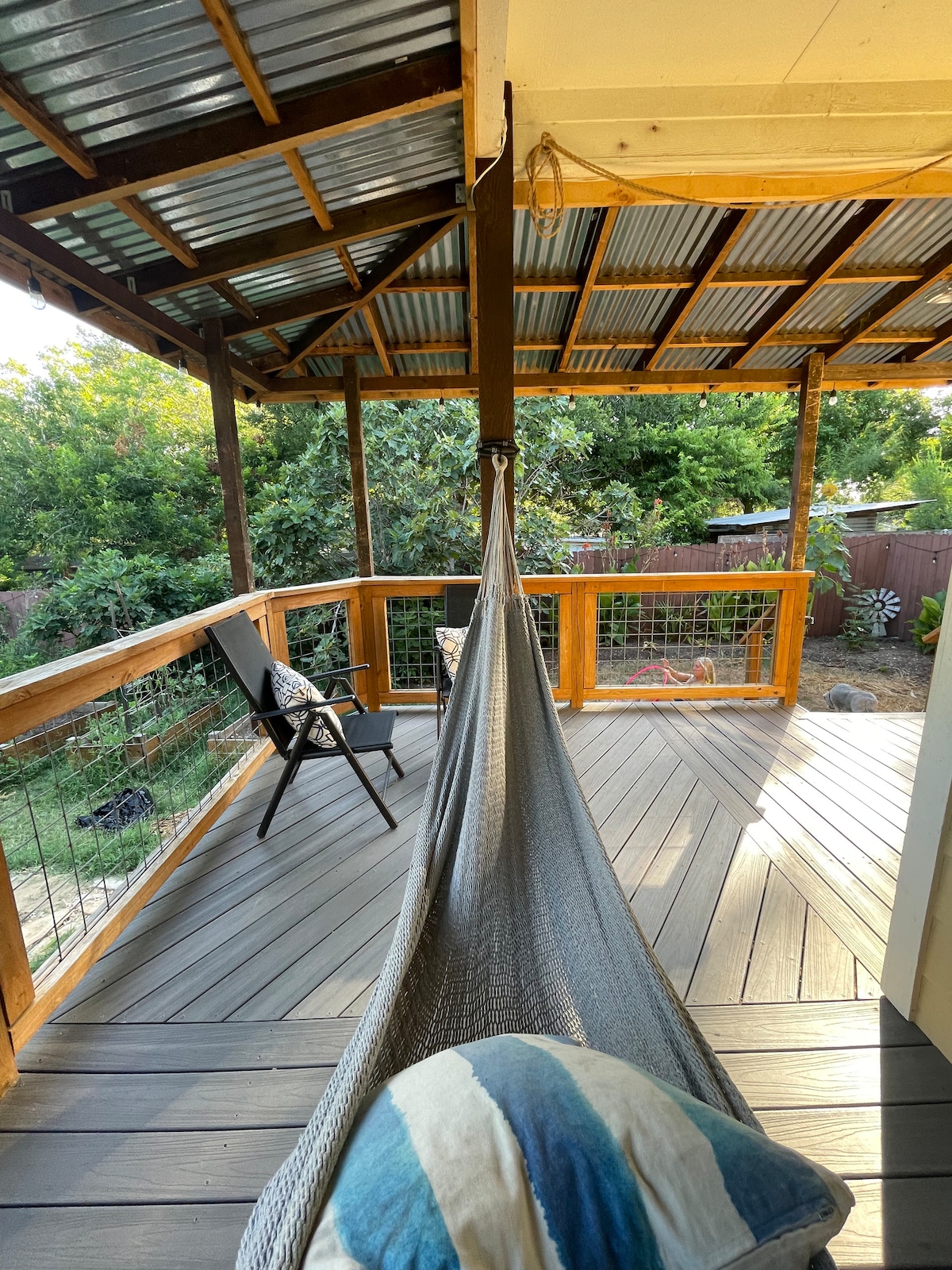 Casa de huéspedes privada separada por una pasarela, no conectada a la casa principal. Al otro lado de la calle hay un gran parque, enclavado en un tranquilo barrio del sureste de Austin, a 2 millas del parque estatal McKinney Falls, a 5 millas de COTA, con 6 camiones de comida y un camión de café a pocos minutos a pie de la casa. La pasarela te lleva a la entrada de la eficiencia privada con entrada sin llave. En el interior disfruta de una zona de estar y de trabajo. La casita tiene capacidad para 3 huéspedes cómodamente. Revisa todos los detalles del anuncio.