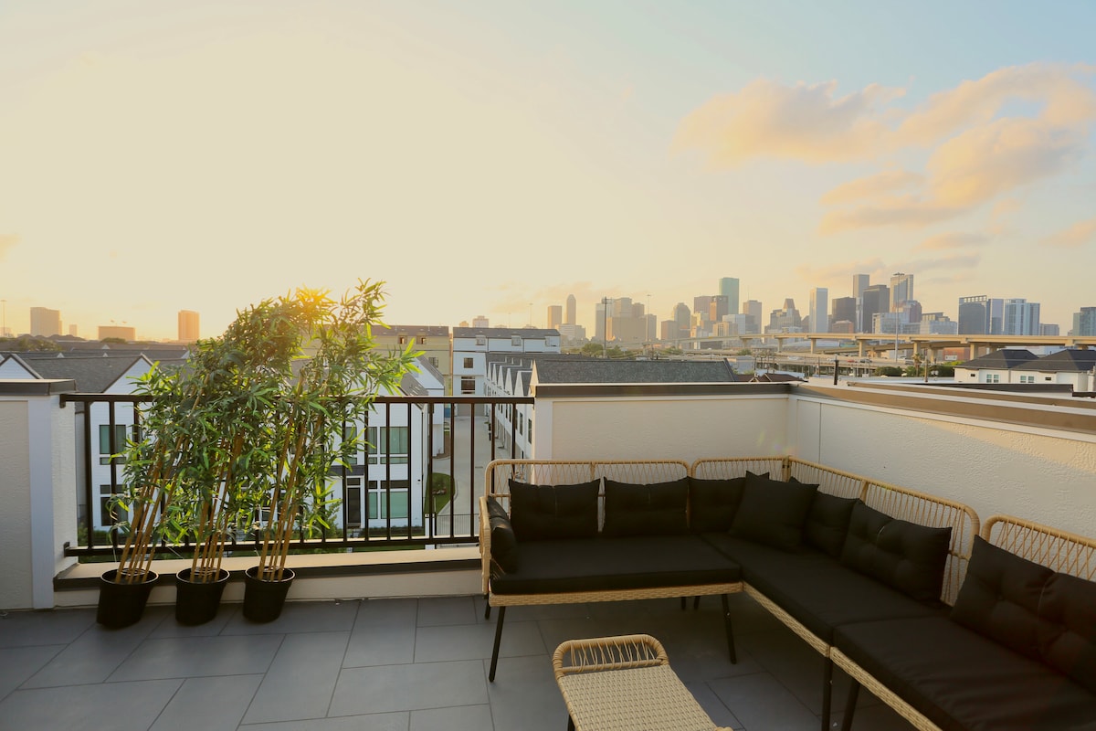 Experimenta el lujo moderno de Houston en esta casa de nueva construcción, ubicada en el centro de la ciudad, a solo 4 minutos del Centro de Convenciones George R. Brown, Toyota Center, Med Center y Daikin Park (Minute Maid Park) Disfruta de las vistas del horizonte desde tu oasis privado en la azotea, que cuenta con un spa con bañera de hidromasaje para 6 personas, un salón con chimenea y tumbonas de diseño con sombrilla. Ubicado cerca de lugares populares como Chapman Kirby, The Breakfast Klub, Taste Bar & Kitchen, Lost & Found y más. ¡Ve al estadio y al distrito de los museos NRG desde aquí también!