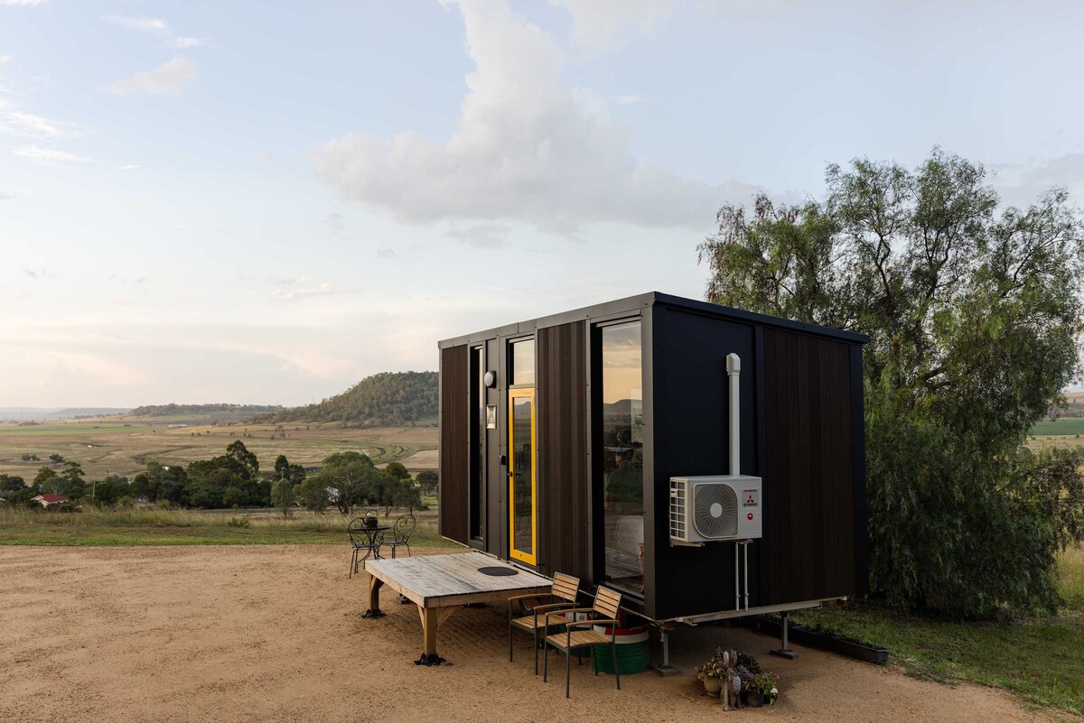 One-bedroom tiny home with modern open plan living on semi-rural acreage. Close to numerous wedding venues, self-contained, linen provided, reverse cycle air-conditioning, wood fireplace with breathtaking sunsets. Entertainment provided by playful ball chasing pooches. Max 2 guests. Owers live in separate homestead. Visiting for a wedding or special event? Makeup artistry is covered by experienced MUA on site. Exclusively for guests of Isobel’s Cottage. Enquire when booking.