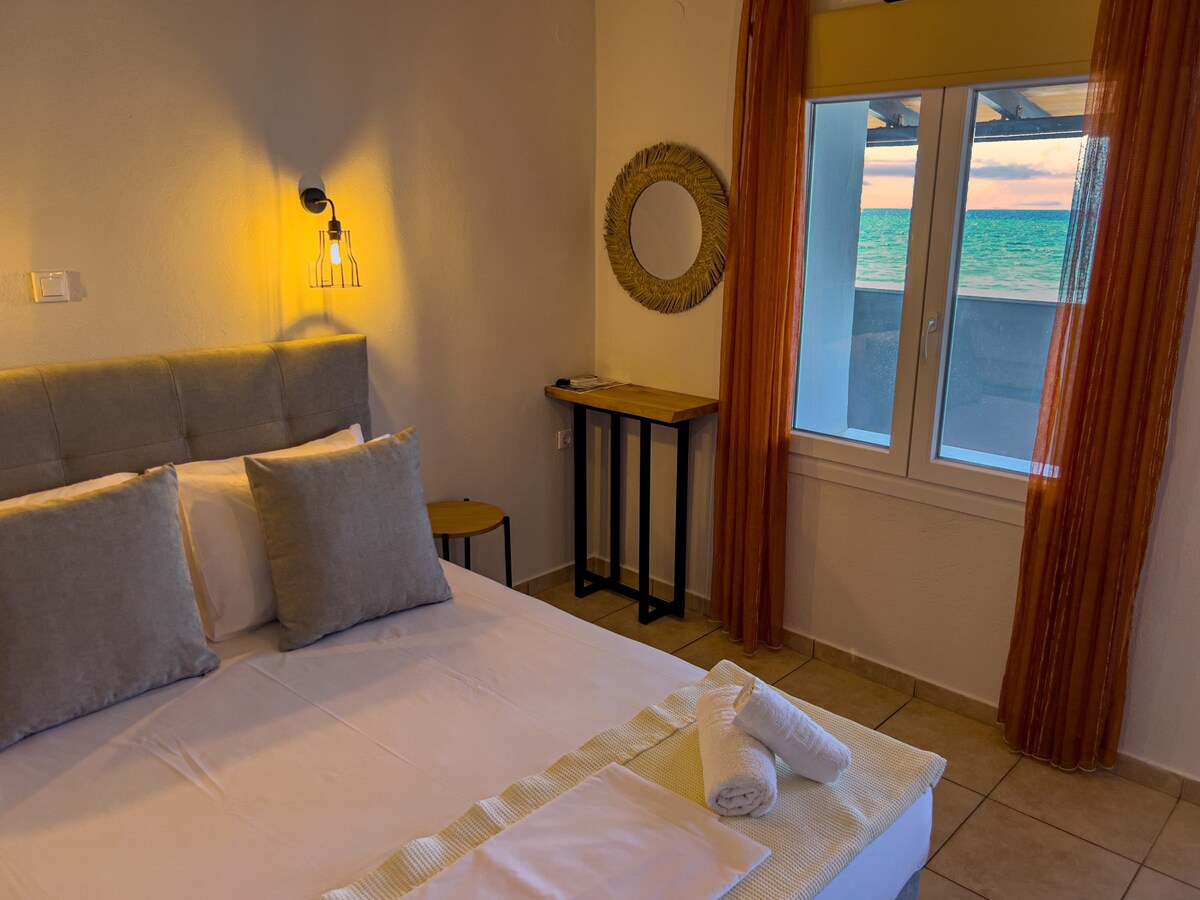 Todo el grupo estará cómodo en este espacio espacioso y único junto al mar. Zeus es un apartamento frente a la playa con un amplio balcón privado que te encantará desde el primer segundo. Es el lugar ideal para familias o parejas que buscan privacidad y una experiencia única. Disfruta de una espaciosa suite con un diseño moderno, colchones de alta gama, una cocina totalmente equipada y un balcón privado para tus momentos más preciados. Con impresionantes puestas de sol, este es el lugar ideal para relajarte y disfrutar de tus vacaciones junto al mar.