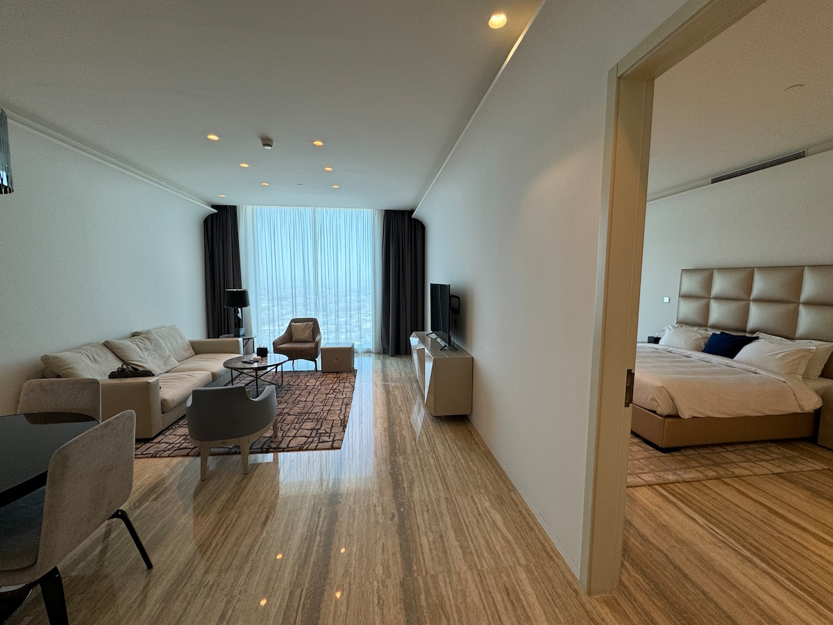 Apartamento en Burj Rafal (residencia del propietario), más de 50 pisos, con vistas al norte, para aquellos que buscan un alojamiento tranquilo y distinguido, cerca de los lugares más destacados de Riad. Totalmente equipado, diseñado y amueblado con lujosos muebles personales; incluye un dormitorio con una cama principal, una cocina, (2) baños, iluminación cinematográfica, una lavadora, cafetera, TV de 75 pulgadas y pantalla grande en el dormitorio, filtro purificador de aire, utensilios de cocina para pasar un período de estancia con total comodidad.
