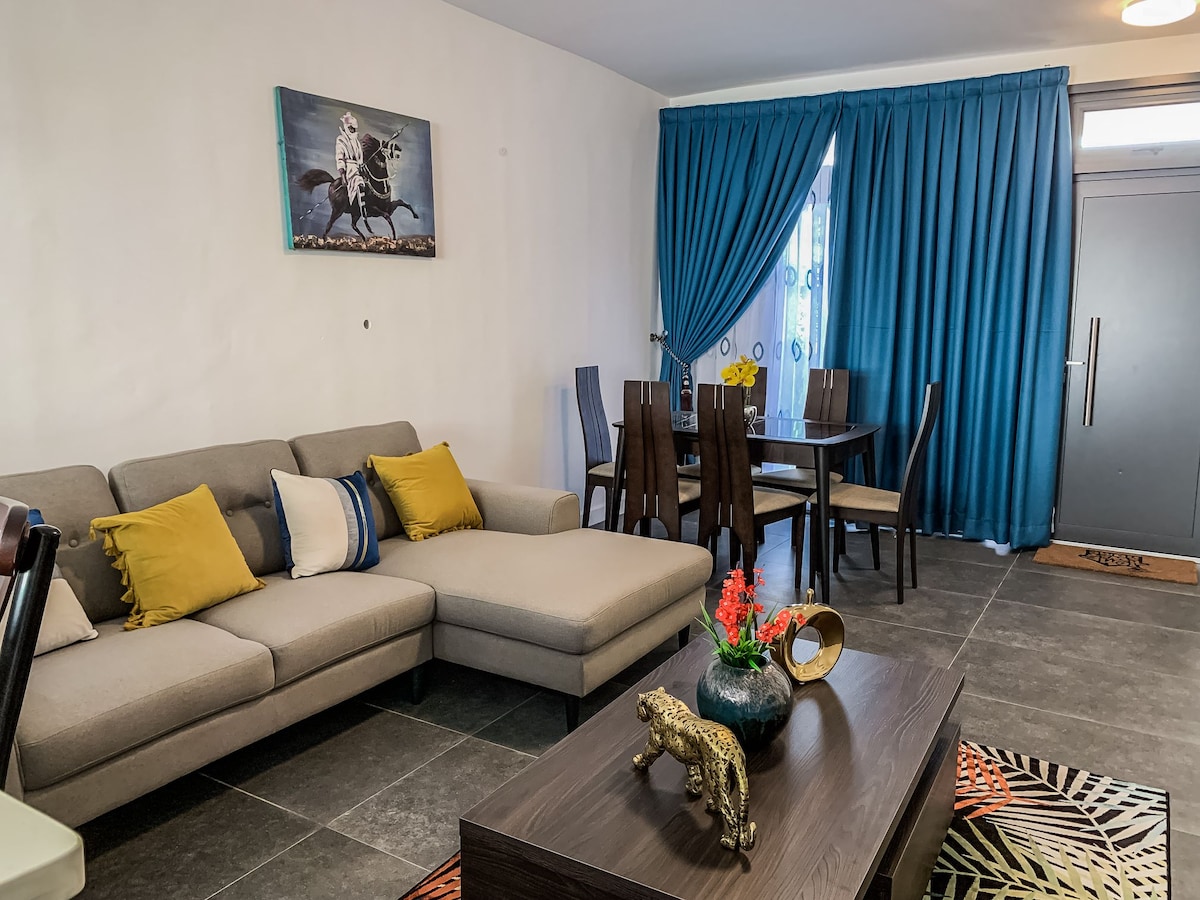 Te damos la bienvenida a tu lujoso hogar lejos de casa. Este elegante apartamento de 2 dormitorios ofrece un ambiente cálido y hogareño con acabados de alta gama, wifi confiable, energía en espera las 24 horas, los 7 días de la semana y acceso a un gimnasio privado. Ubicado en una comunidad cerrada segura y serena, Jak Royale Apartments es la mezcla perfecta de comodidad, clase y conveniencia.