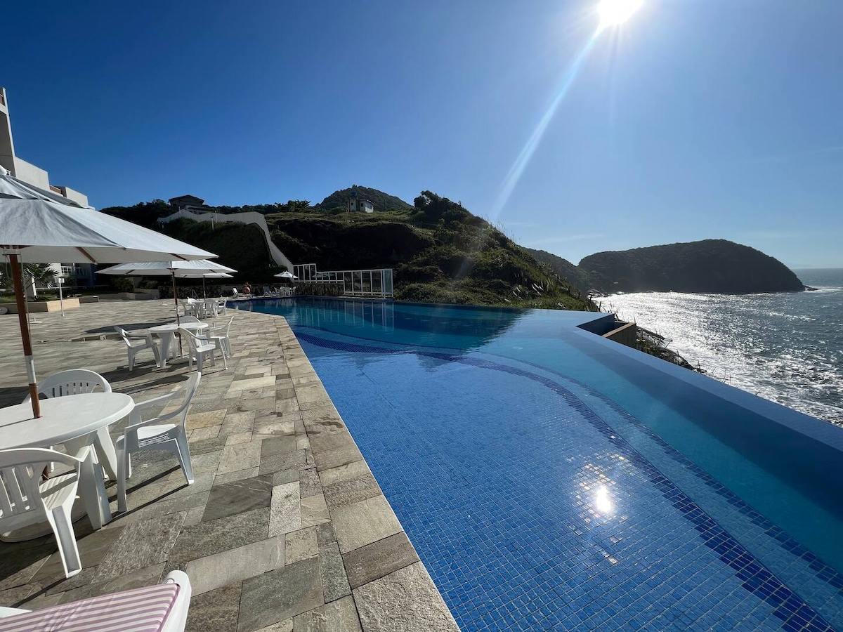 Apartamento moderno, completamente renovado con vistas panorámicas al mar, simplemente impresionante. Despiértate con el sonido de las olas. Excelente ubicación en el encantador Morro do Maluf, fácil acceso a la playa de Pitangueiras, cerca del centro, tiendas, mercado y restaurantes. Tiene un amplio salón con balcón frente al mar, 2 suites con aire acondicionado dividido y una cocina moderna. Wifi 500 megabytes Tiene 1 plaza de aparcamiento. El edificio ofrece servicios de playa⛱️ Te damos la bienvenida a la casa junto al mar 🌊⚓️