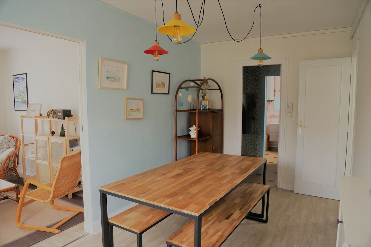 Muy bonito apartamento tranquilo, reformado en un edificio seguro con ascensor. El apartamento está situado en el centro de Royan. A 5 minutos del mercado central de Royan. (Uno de los mercados más bellos de Francia) y a 10 minutos a pie de la playa. Consta de un dormitorio con cama de 160 cm y vestidor, un sofá cama situado en el salón (posibilidad de cuna bajo petición), una cocina totalmente equipada, un comedor, un aseo separado, un cuarto de baño con lavadora. Wifi y televisión