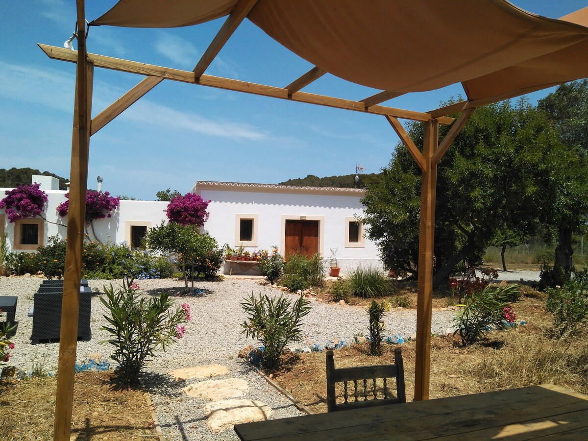 Casa rural de estilo ibicenco. Situada en zona tranquila y ubicada en una parcela de terreno de 10.000 metros cuadrados, con árboles frutales (olivos, ...). Ideal para relajarse i desconectar. Cercana a playas y calas (Cala Jondal, Porroig, Cala d'Hort, Ses Salines, ...). Próxima a la ciudad de Ibiza y al aeropuerto (10-15 minutos en coche). Vivienda inscrita en el registro insular de empresas, actividades y establecimientos turísticos de ibiza con el número ET-0267-E.