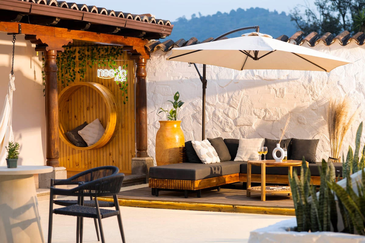 Solo adultos Vulkana Apartment – Diseño y vista espectacular al Volcán Fuego Apartamento de dos niveles en el lujoso Vulkana Resort cerca de Antigua. Disfruta de un diseño moderno tipo jungla, con sala, cocina y baño abajo, y un dormitorio arriba con impresionante vista al volcán. Acceso a las áreas del resort. Ideal para parejas o viajeros que buscan tranquilidad, estilo y naturaleza. Seguridad 24/7, Wi-Fi y estacionamiento incluidos.