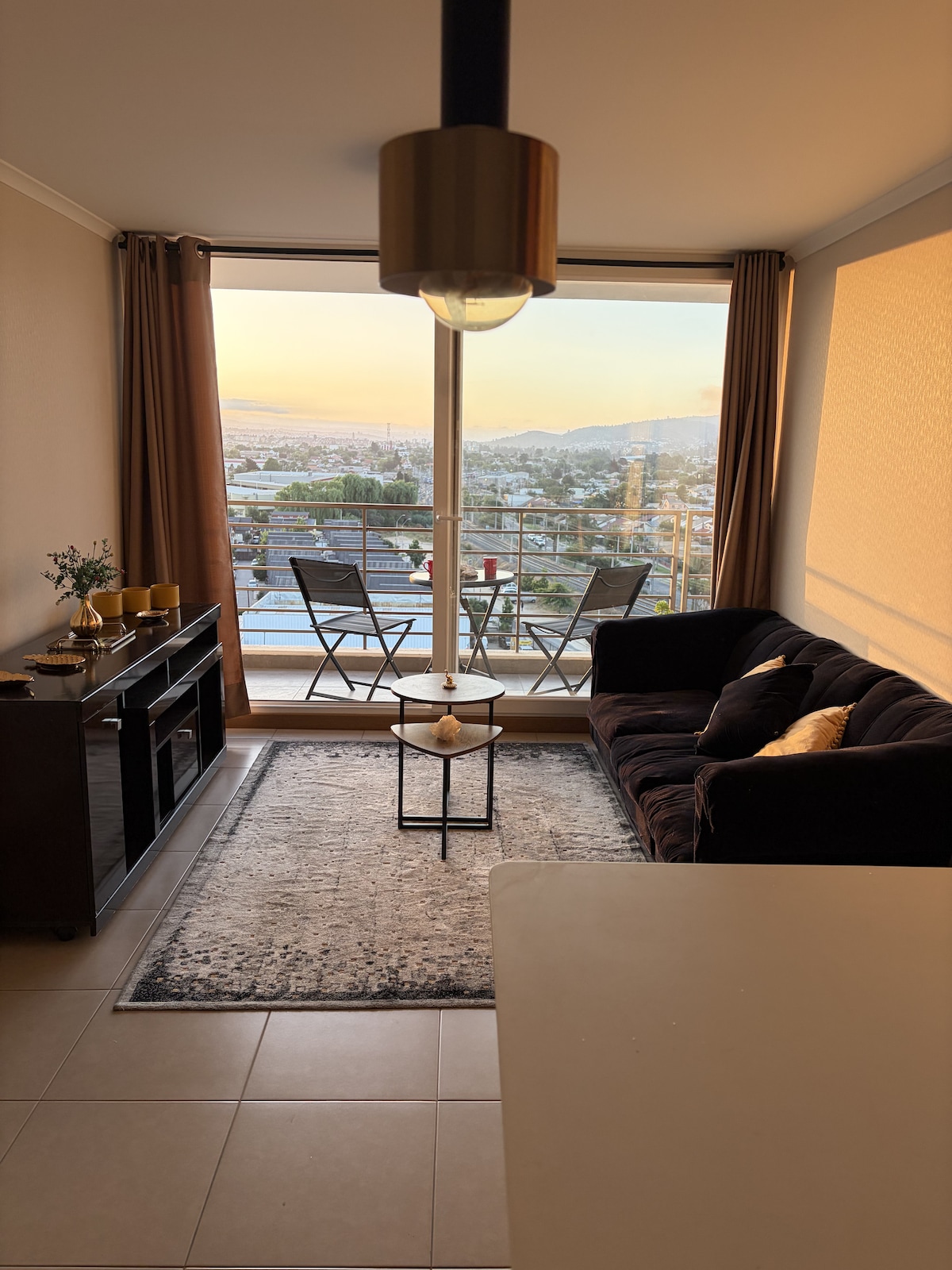 Lindo departamento tipo estudio con vista al mar, full equipado para dos personas. Condominio cuenta con 1 piscina habilitada en el piso 7, conserjería las 24 horas, cafetería y estacionamiento techado privado. Acceso a playa cochoa por escalera cercana (a 300 metros del edificio) o auto. Departamento cuenta con WIFI, smart TV con Netflix; secador de pelo, toallas, sábanas, calefactor, closet. Buena conectividad y cercano a restaurantes, cafés, supermercados, dunas de Concón y playa de Reñaca.