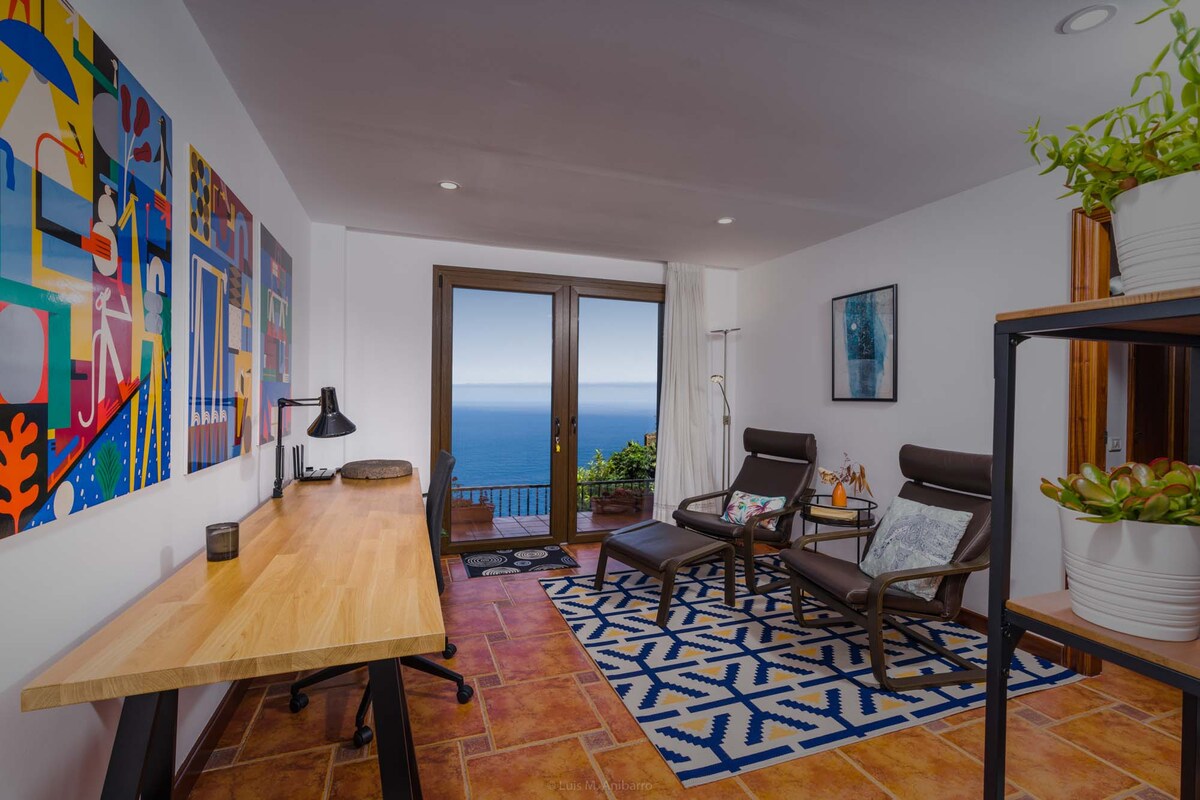 “Bella-Vista Suite" bien merece su nombre: ubicado en la ladera de un impresionante acantilado, tendrá la sensación de estar flotando sobre el océano a 220 metros de altura. Sin duda, podrá disfrutar de las mejores vistas infinitas de la costa norte de Tenerife, que arrancan con el majestuoso Océano Atlántico bajo sus pies, en la cala natural que alberga al complejo, y se extienden hacia el horizonte, culminando en el magnífico Teide sobre el valle.