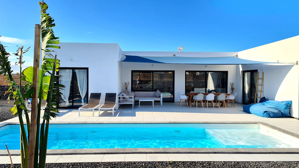 Casa Los Lajares casa nueva y moderna y piscina climatizada