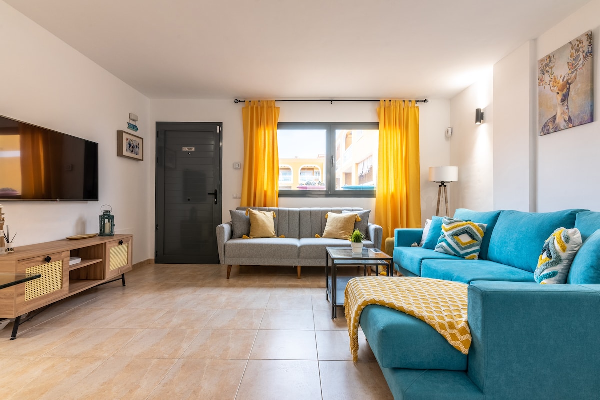Apartamento muy luminoso con Wifi,SmartTv(Netflix y Primer Vídeo), en una de las mejores zonas de Corralejo,en el centro. Todos los restaurantes a pie, Hiperdino al doblar la esquina, correos, bancos , bazar, imprentas para imprimir documentos , gasolinera , cafeterías , parque infantil, cancha de futbol, no es necesario coger el coche para nada , incluso hay una pequeña playa tan solo 100 m. Casa amplia, limpia ,1 sofá cama, plato de ducha grande ,2 camas de matrimonio de 140 en litera con TV.