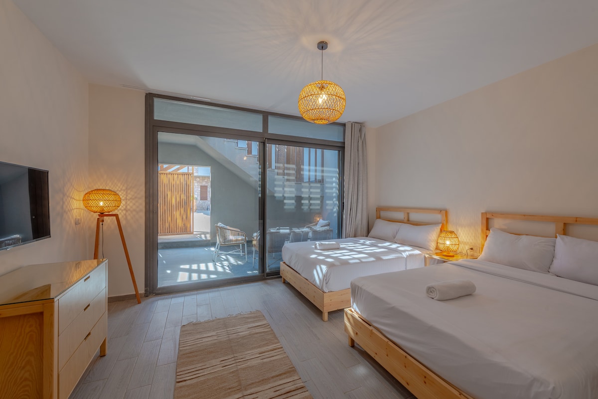 1 dormitorio en la planta superior en Mangroovy M7 con vista parcial al mar. Sin balcón, pero elegante, tranquilo y totalmente amueblado, ideal para parejas extranjeras o viajeros solitarios cerca de la playa. TAMPOCO SE PERMITEN PAREJAS EGIPCIAS NO CASADAS. NO SE ADMITEN GRUPOS MIXTOS.