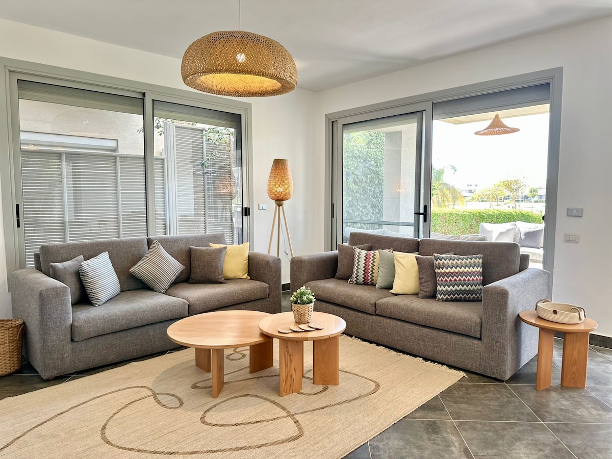 Welcome to The Blue Waves Escape — your serene, stylish home in Stella Di Mare, designed for families and travelers seeking comfort, space, and effortless beach living. Newly renovated and thoughtfully styled with a modern coastal aesthetic and elegant Arabian touches, this spacious ground-floor chalet blends relaxed beach vibes with a boutique hotel feel. Natural textures and curated details create a calm, inviting atmosphere the moment you walk in.