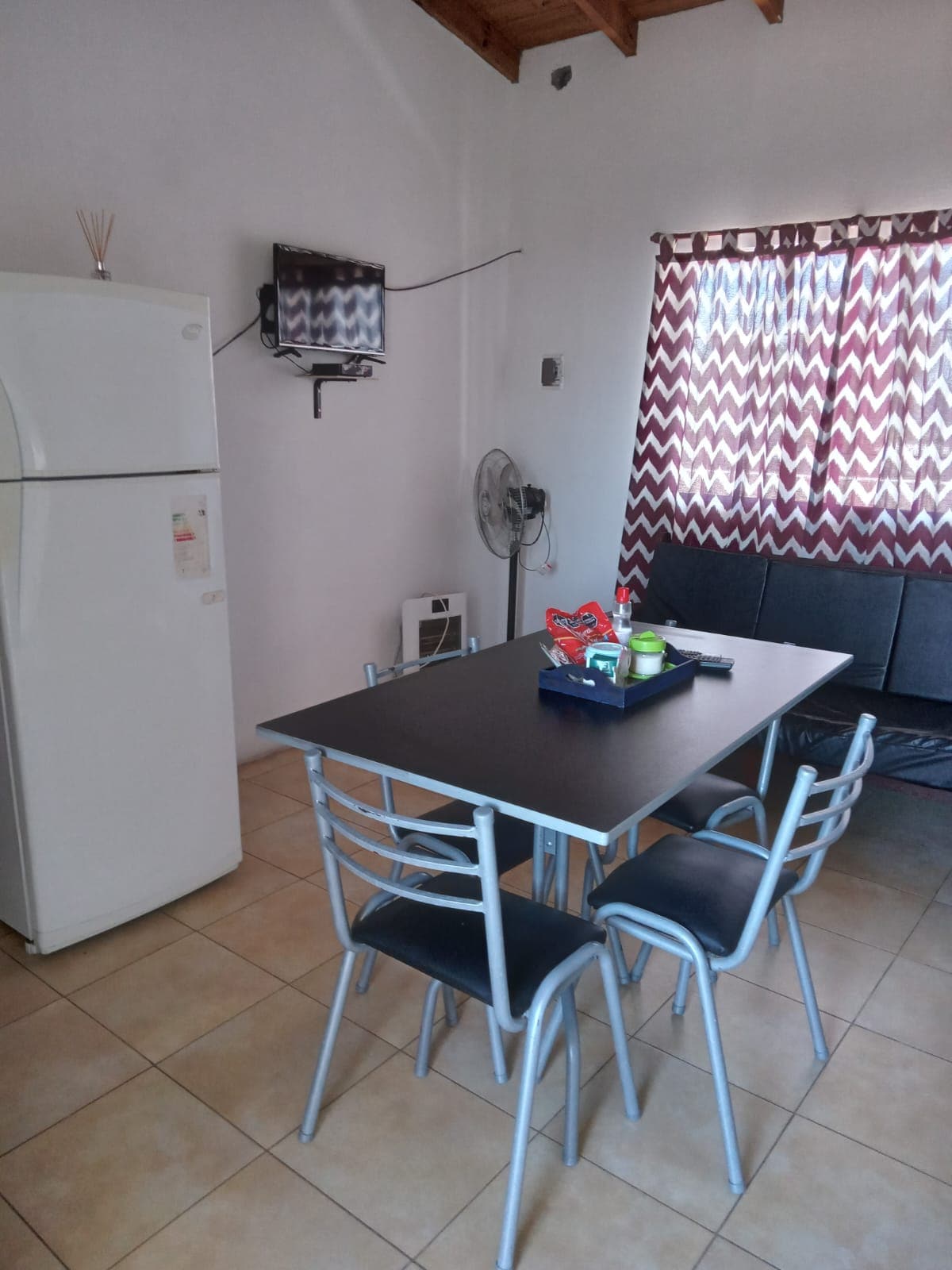 El alojamiento cuenta con dos habitaciones con camas matrimoniales e individuales. Hay dos baños. Uno en la planta alta y otro en en la planta baja. (solo el de planta alta cuenta con ducha) Cuenta con jardín, en el que hay una parrilla. Aire acondicionado frío-calor en el comedor y en la habitación principal. WIFI Toallas, sábanas, shampoo, acondicionador, secador de pelo. Cocina, microondas, pava eléctrica. ¡Estamos a disposición!
