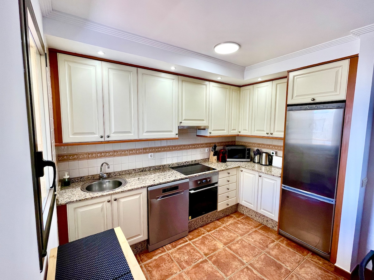 Despierte con el arrullo de las olas en una acogedora residencia junto al mar. En el corazón de 'Golf del Sur', nuestro cálido bungalow ofrece una terraza frente al océano, piscinas de ensueño—incluida una piscina relax—y un paseo marítimo que conduce al pintoresco pueblo pesquero de 'Los Abrigos', famoso por sus excelentes restaurantes frente al mar. La casa está completamente equipada para que se sienta como en su propio hogar.