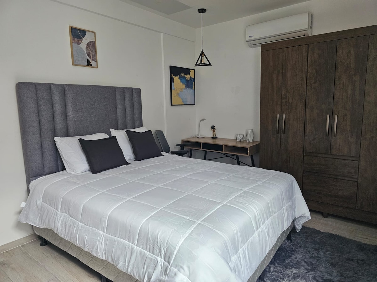 El estudio está muy bien equipado con todo lo necesario ideal para 2 personas que buscan un lugar tranquilo en buena ubicación Cuenta con una pequeña cocina, cama Queen size, área de trabajo, TV con Netflix, baño privado. El estudio está en la segunda planta. 🏊♀️ La piscina es compartida y su uso es hasta las 10:00pm 🚫 No es permitido las visitas. 👮Solicitamos imagen de identificación de acompañante. ⚡️El edificio NO cuenta con generador eléctrico. Tomar en cuenta todos los reglamento.