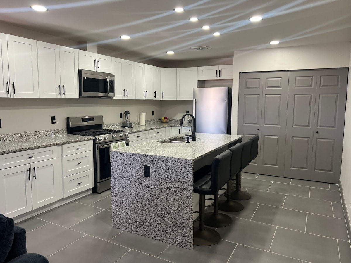 ESTA AMPLIA VILLA HA SIDO RENOVADA POR DENTRO Y POR FUERA. SE ENCUENTRA EN EL OESTE DE LA CIUDAD, CERCA DE TIENDAS, RESTAURANTES Y A POCOS MINUTOS DE LA AUTOPISTA (I-10). TENEMOS 3 CAMAS KING, 1 CAMA QUEEN, CAMA PLEGABLE SEGÚN DISPONIBILIDAD ESTE LUGAR CON ESTILO ES PERFECTO PARA RESERVAS DE ÚLTIMA HORA O ESTANCIAS DE UN MES. TE ENAMORARÁS DE CADA DORMITORIO ÚNICO JUNTO CON TODO EL ESPACIO DE LA SALA DE ESTAR.