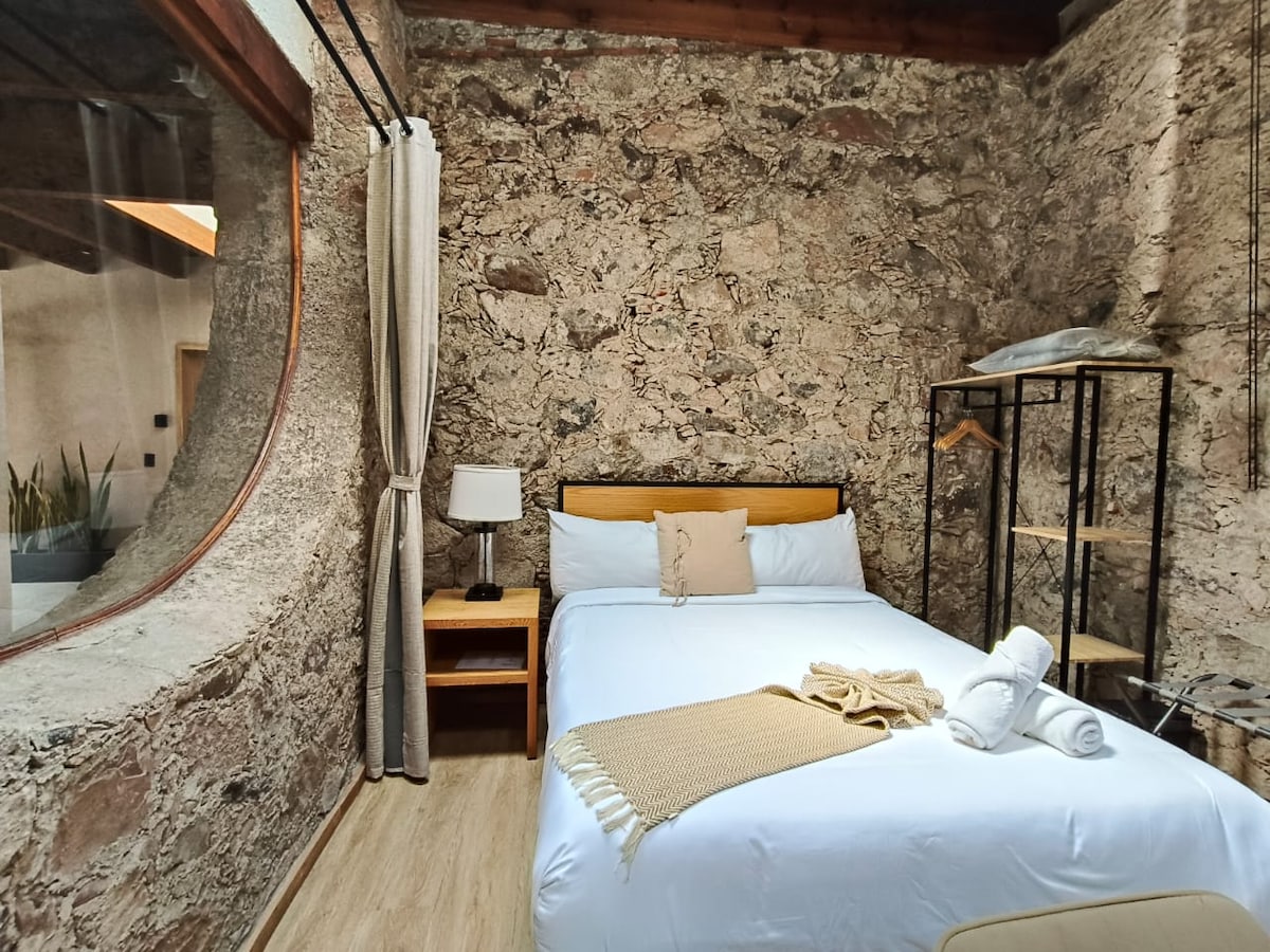 Alojamiento con excelente ubicación en el centro histórico de Querétaro a pocos mts de las principales plazas y jardines así como de la red de andadores. Excelente para visitar caminando museos, edificios emblemáticos del barroco como Iglesias, conventos, etc ... y la vida nocturna del centro de la ciudad. Hospédate en una casa antigua del siglo XVIII remodelada para departamentos, con espacio de co-working y vigilancia las 24 hrs.