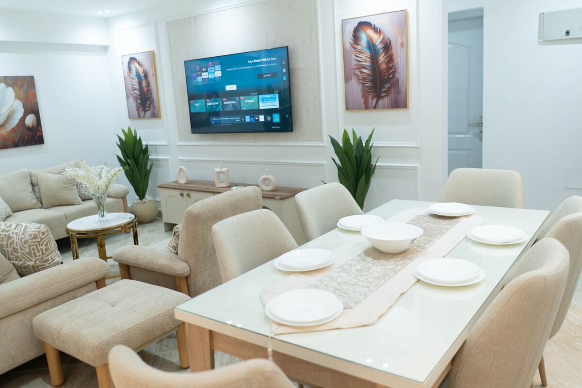 Departamento espacioso y elegante en Al-Rehab: ¡ubicación privilegiada! Alójate en nuestro moderno apartamento en Al-Rehab, cerca de la Puerta 20 y a pocos pasos de Al Souq Al-Sharqi y East Court, con el club cerca y el centro comercial Avenue a menos de 5 minutos en coche. ¡Perfecto para hasta 6 huéspedes! Servicios: ✔ Wifi de alta velocidad y TV de 65 pulgadas ✔ Aire acondicionado en los 3 dormitorios y en la sala de estar ✔ Cocina totalmente equipada ✔ Hay mucho estacionamiento cerca Registro de entrada: después de las 14:00 No se admiten mascotas. ¡Una estancia elegante y cómoda te espera!