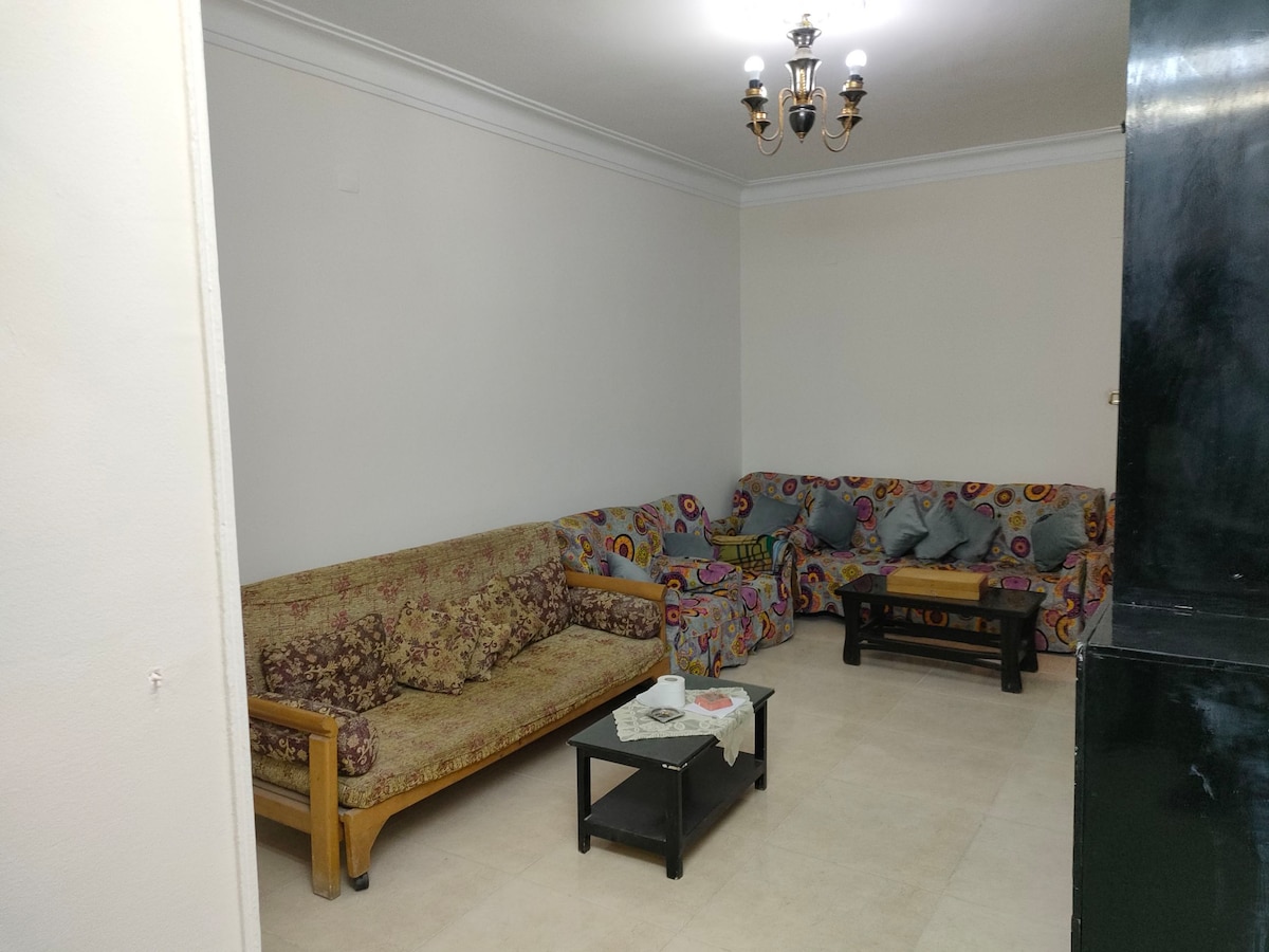 Un apartamento espacioso que puede alojar hasta 5 personas cómodamente. Ubicado en un barrio acogedor en la zona de Haram; a menos de 3 kilómetros de las pirámides de Guiza y el Gran Museo Egipcio (abierto el 3 de julio), y también no muy lejos del centro de El Cairo (25-35 minutos). El lugar es nuevo con numerosos extras encantadores;) El transporte, las tiendas y los supermercados están a poca distancia. También vivo cerca y estaré encantado de ayudar cuando sea necesario. * Recogida en el aeropuerto *