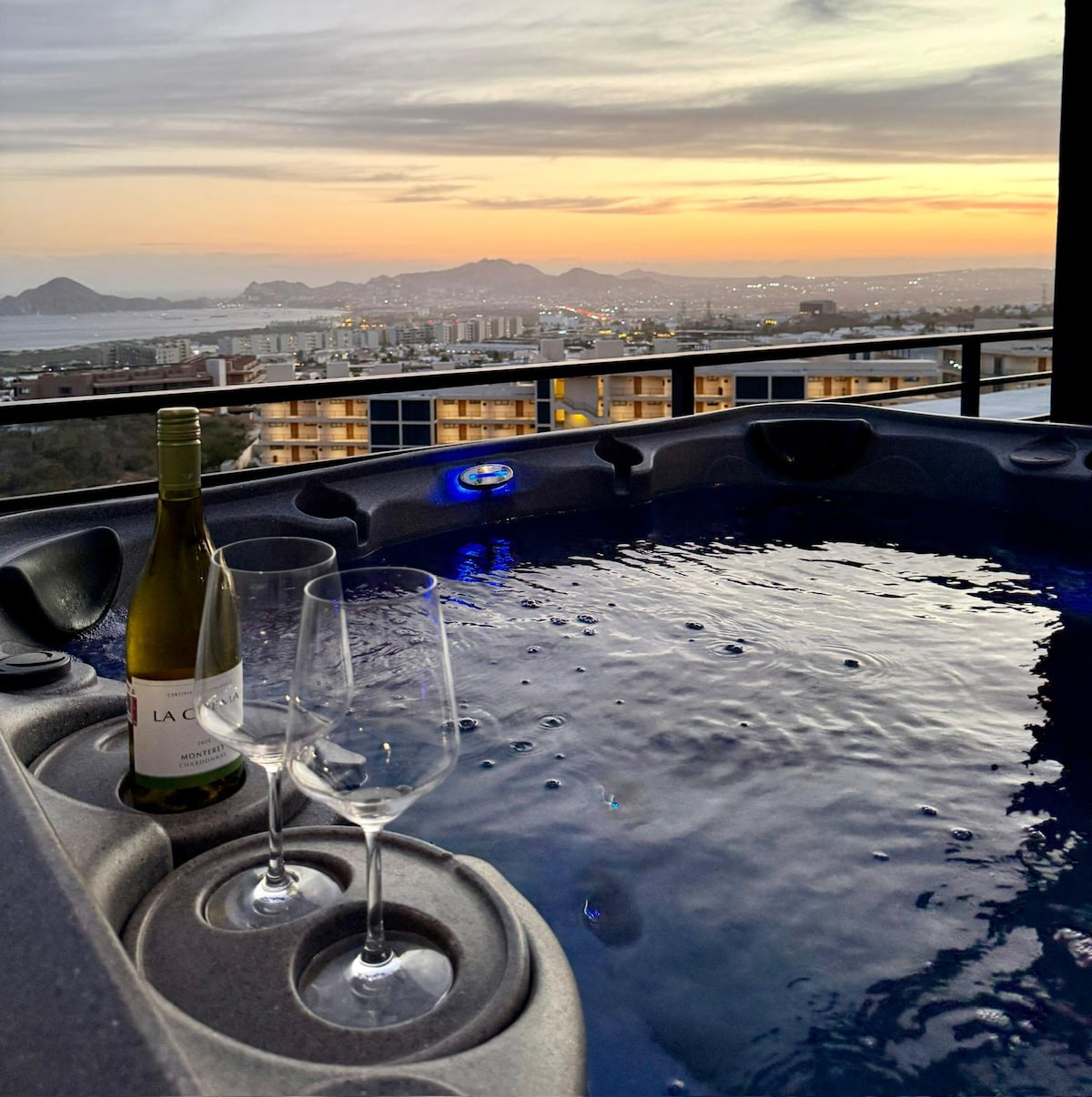 ¡Disfruta de este hermoso loft panorámico con jacuzzi privado, ubicado en la Marina de Cabo San Lucas, El espacio ofrece comodidad, privacidad y una vista espectacular, ideal para disfrutar Cabo caminando a restaurantes, bares, tours y vida nocturna. El loft está preparado para hasta 4 huéspedes, con cama King Size y sofá cama Queen Size, perfecto para parejas, amigos o familias pequeñas. Después de un día en la playa, relájate en el jacuzzi con vista a la marina.